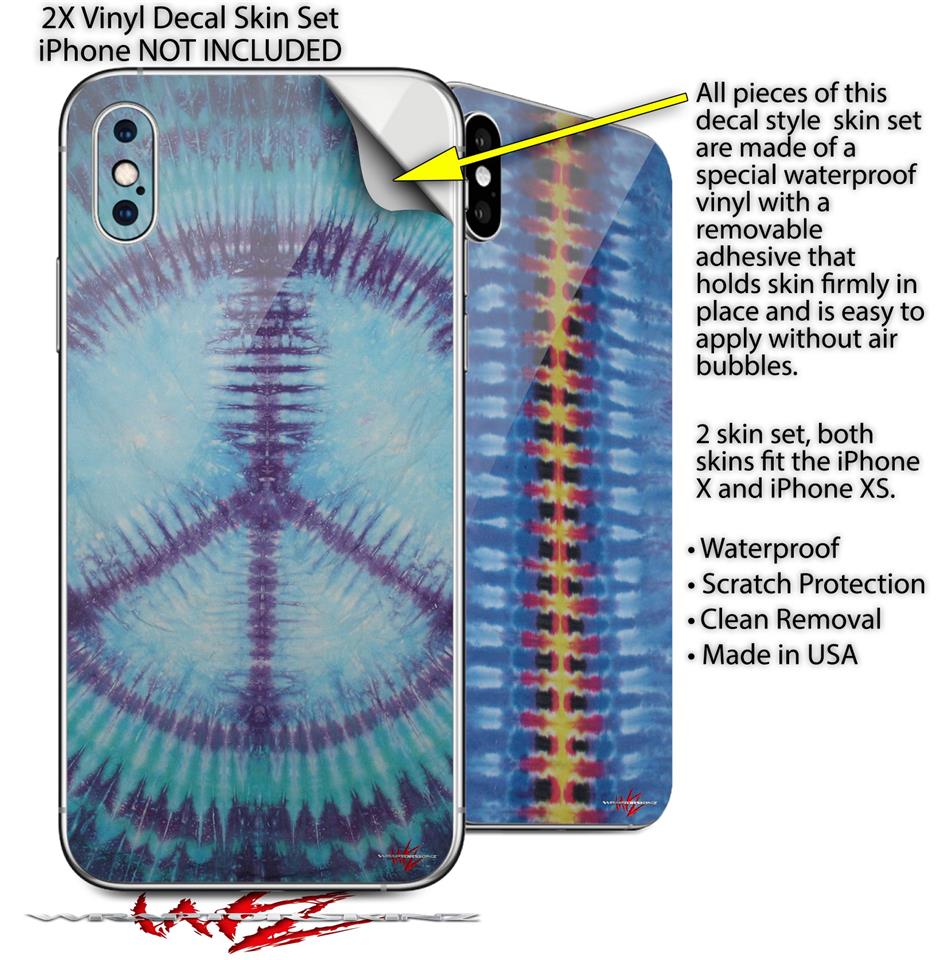 2 Decal style Skin Wraps set for Apple iPhone X and XS Tie Dye Peace Sign 107