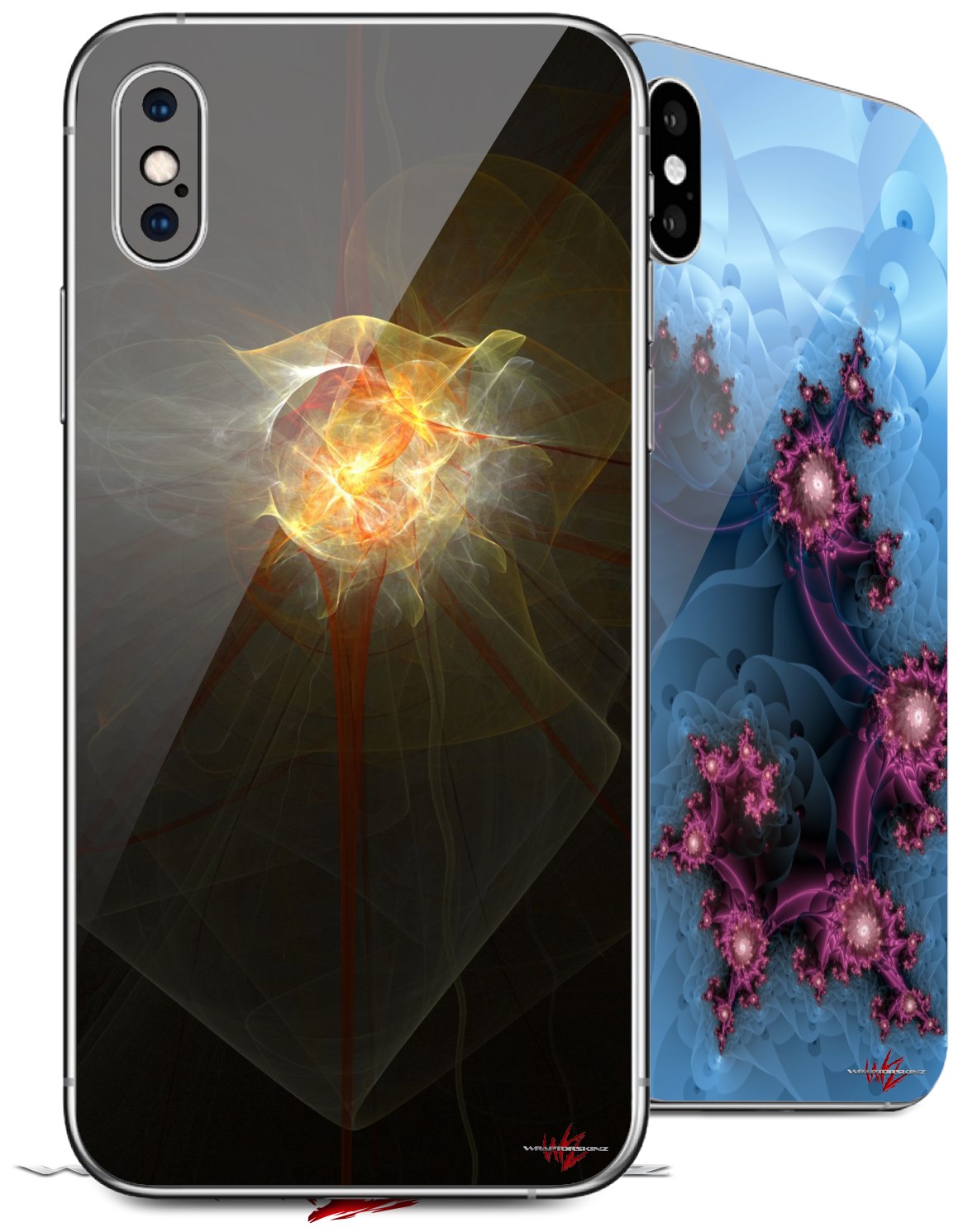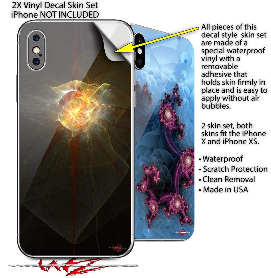 2 Decal style Skin Wraps set for Apple iPhone X and XS Fireball