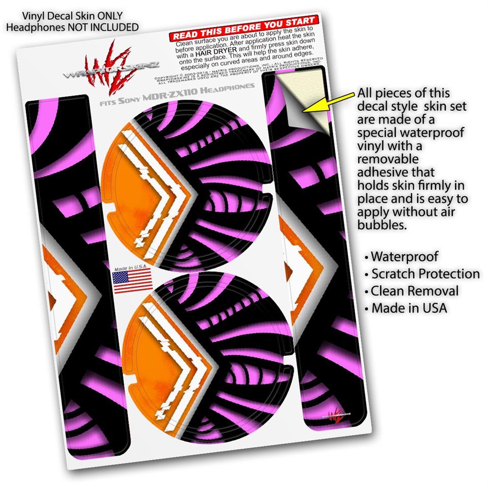 Decal style Skin Wrap for Sony MDR ZX110 Headphones Black Waves Orange Hot Pink (HEADPHONES NOT INCLUDED)