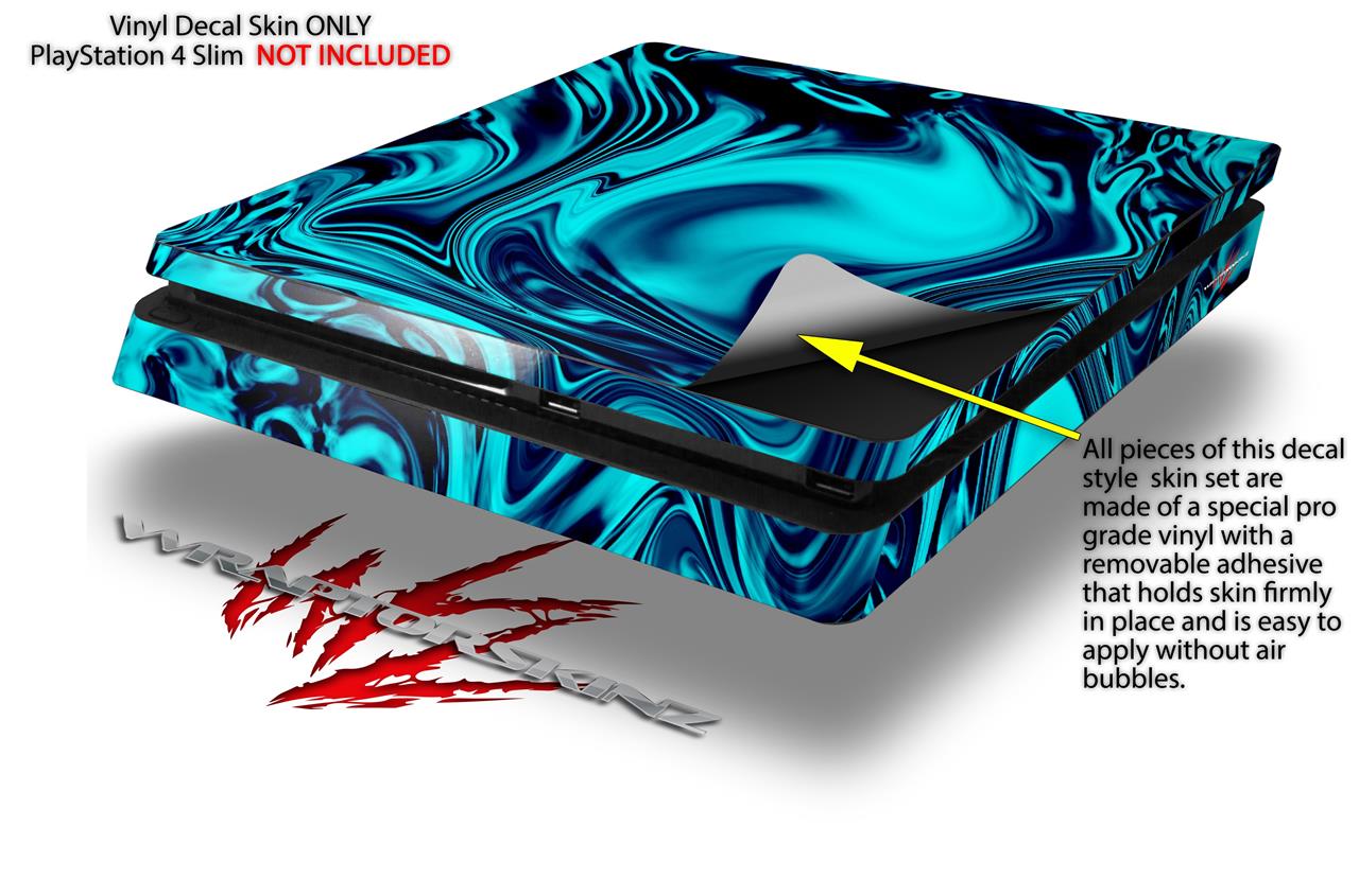 Vinyl Decal Skin Wrap compatible with Sony PlayStation 4 Slim Console Liquid Metal Chrome Neon Blue (PS4 NOT INCLUDED)