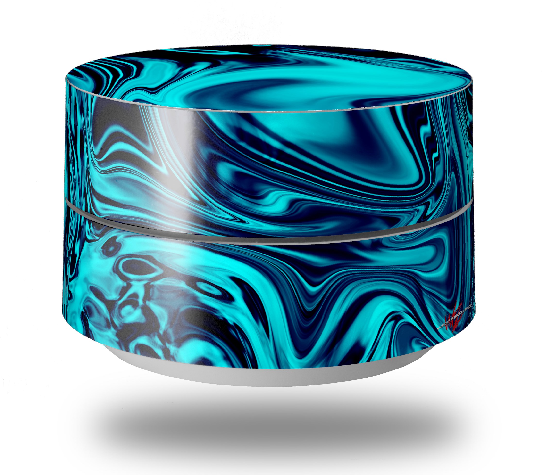 Skin Decal Wrap compatible with Google WiFi Original Liquid Metal Chrome Neon Blue (GOOGLE WIFI NOT INCLUDED)