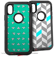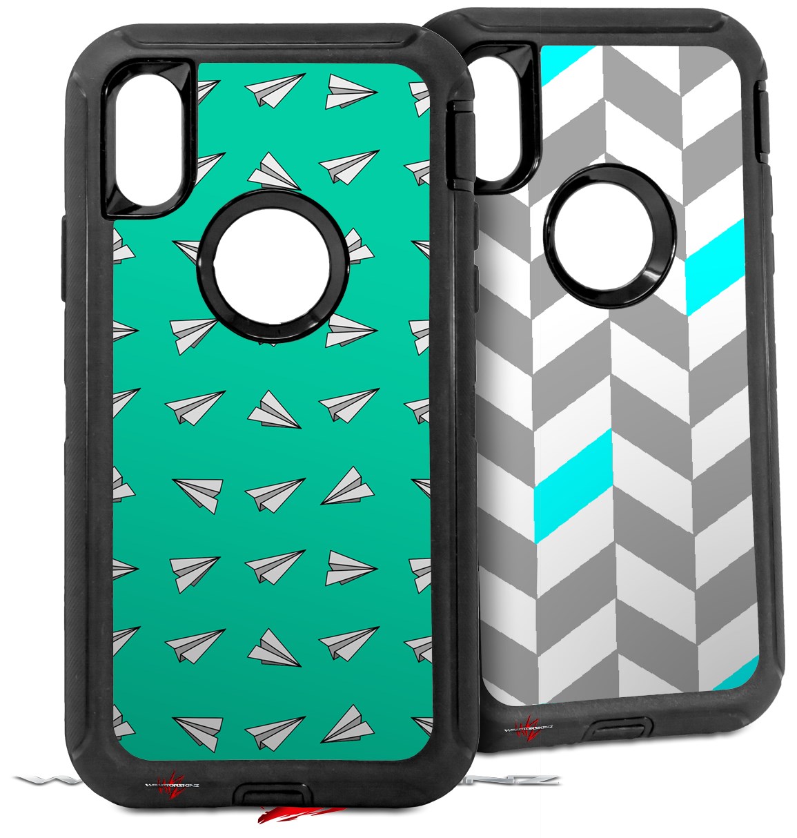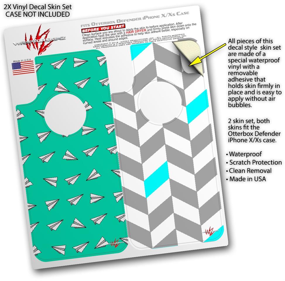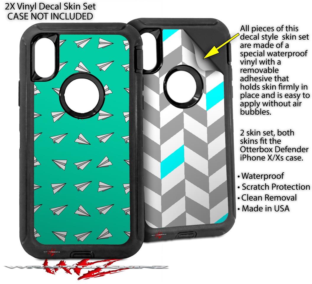 2x Decal style Skin Wrap Set compatible with Otterbox Defender iPhone X and Xs Case - Paper Planes Turquoise (CASE NOT INCLUDED)