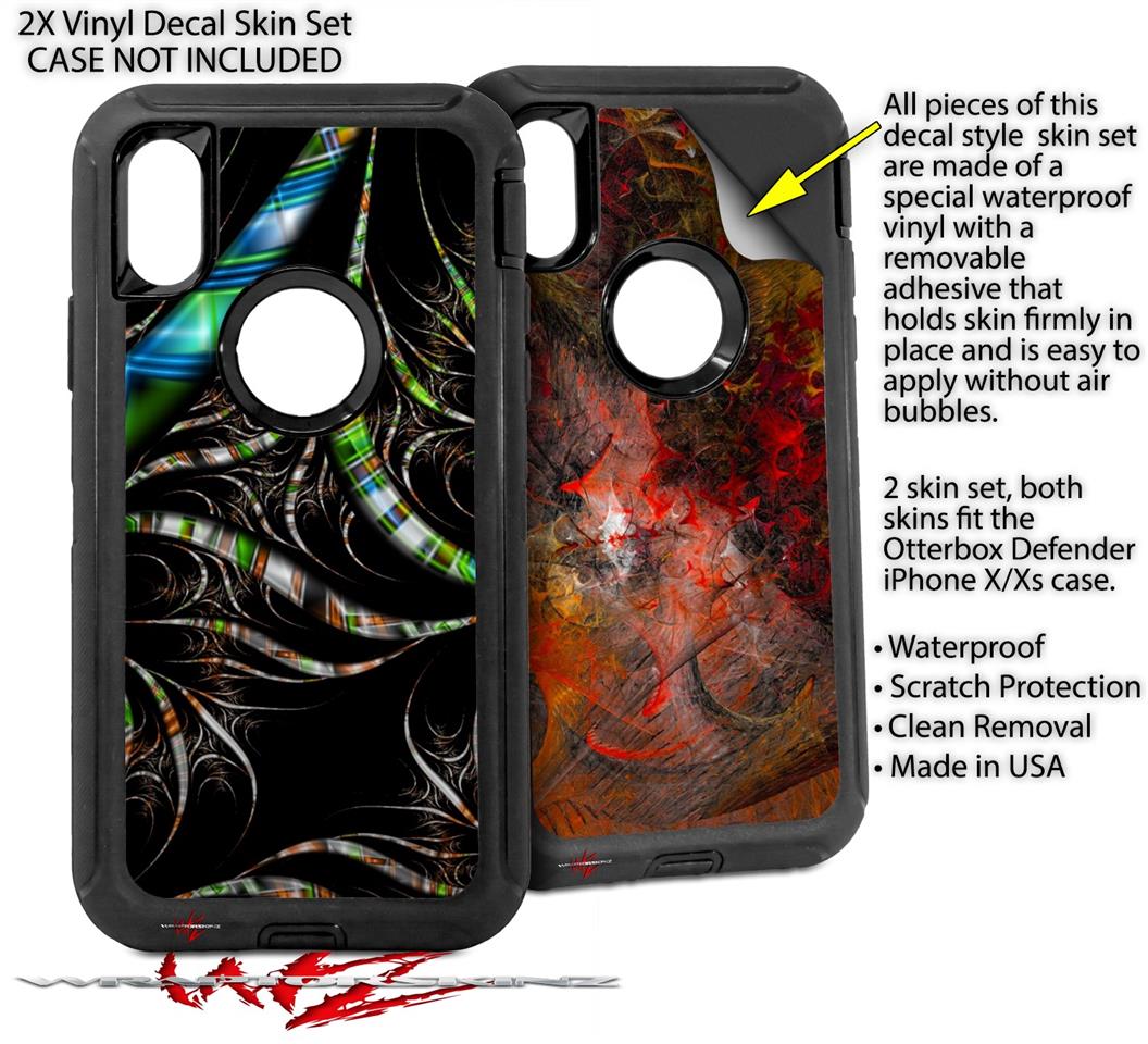 2x Decal style Skin Wrap Set compatible with Otterbox Defender iPhone X and Xs Case - Tartan (CASE NOT INCLUDED)