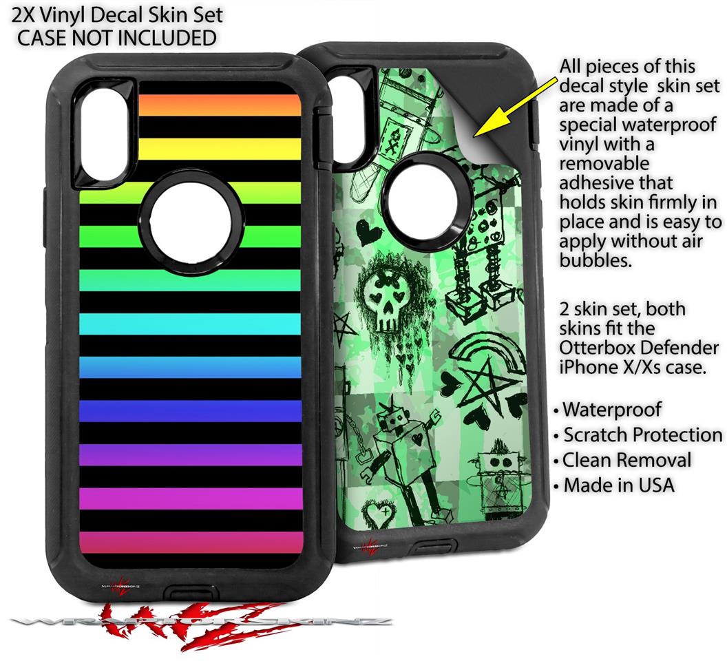 2x Decal style Skin Wrap Set compatible with Otterbox Defender iPhone X and Xs Case - Stripes Rainbow (CASE NOT INCLUDED)