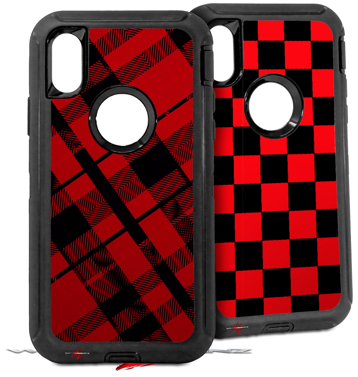2x Decal style Skin Wrap Set compatible with Otterbox Defender iPhone X and Xs Case - Red Plaid (CASE NOT INCLUDED)