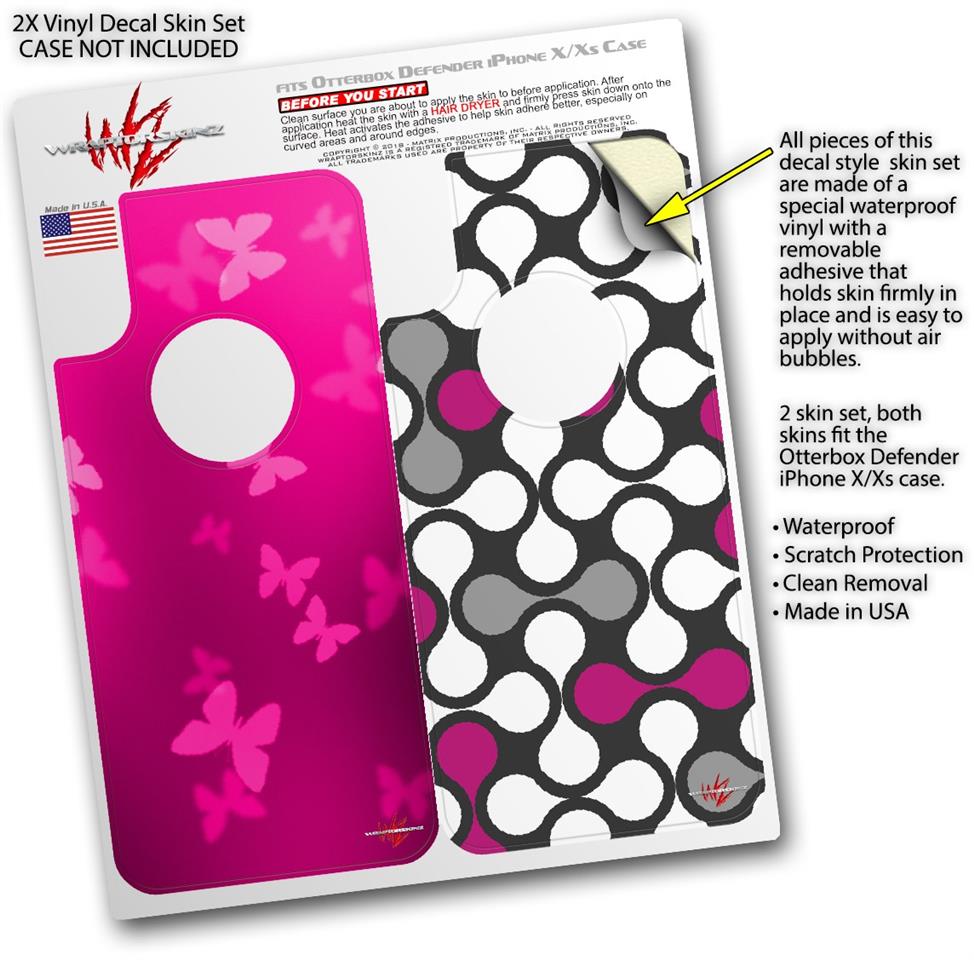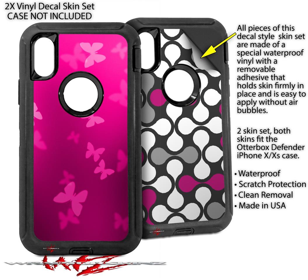 2x Decal style Skin Wrap Set compatible with Otterbox Defender iPhone X and Xs Case - Bokeh Butterflies Hot Pink (CASE NOT INCLUDED)