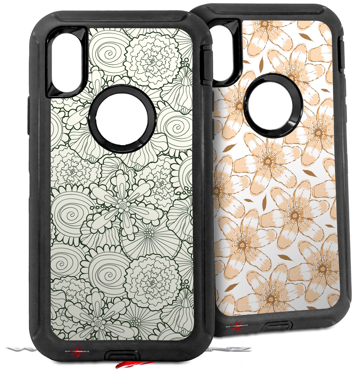 2x Decal style Skin Wrap Set compatible with Otterbox Defender iPhone X and Xs Case - Flowers Pattern 05 (CASE NOT INCLUDED)