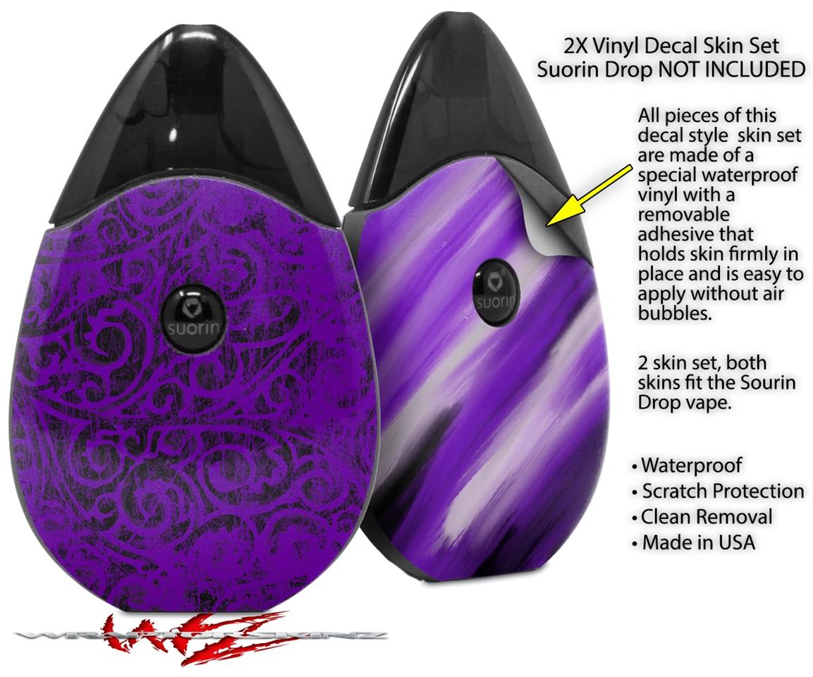 Skin Decal Wrap 2 Pack compatible with Suorin Drop Folder Doodles Purple VAPE NOT INCLUDED