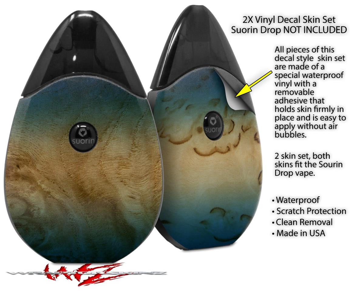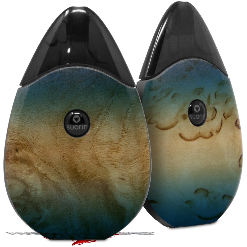 Skin Decal Wrap 2 Pack compatible with Suorin Drop Exotic Wood White Oak Burl Burst Deep Blue VAPE NOT INCLUDED