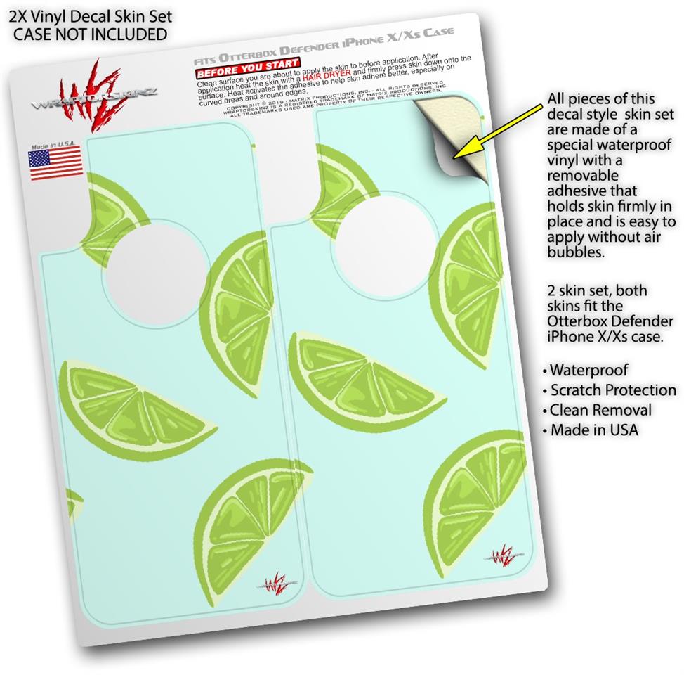 2x Decal style Skin Wrap Set compatible with Otterbox Defender iPhone X and Xs Case - Limes Blue (CASE NOT INCLUDED)