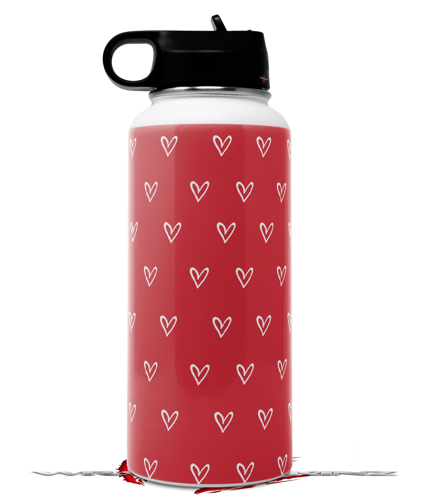 Skin Wrap Decal compatible with Hydro Flask Wide Mouth Bottle 32oz Hearts Red On White (BOTTLE NOT INCLUDED)