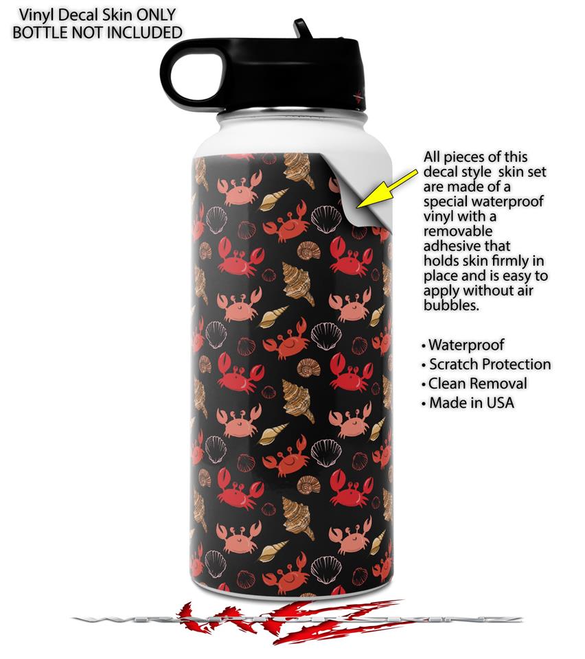 Skin Wrap Decal compatible with Hydro Flask Wide Mouth Bottle 32oz Crabs and Shells Black (BOTTLE NOT INCLUDED)
