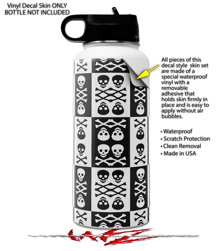 Skin Wrap Decal compatible with Hydro Flask Wide Mouth Bottle 32oz Skull And Crossbones Pattern Bw (BOTTLE NOT INCLUDED)