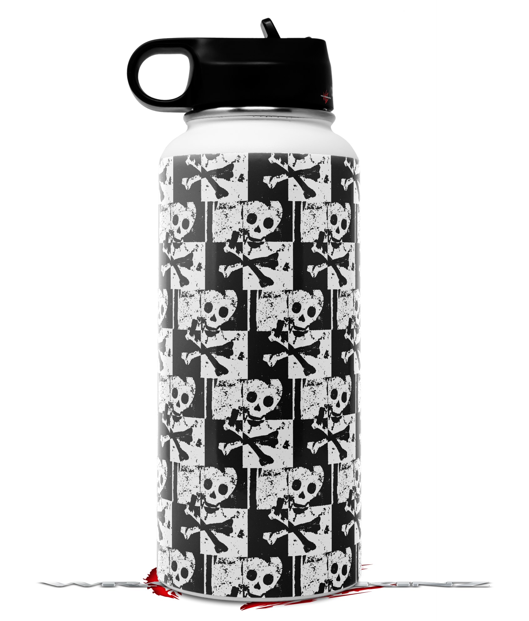 Skin Wrap Decal compatible with Hydro Flask Wide Mouth Bottle 32oz Skull Checker (BOTTLE NOT INCLUDED)