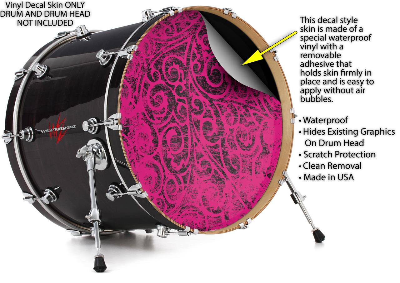 Vinyl Decal Skin Wrap for 22" Bass Kick Drum Head Folder Doodles Fuchsia - DRUM HEAD NOT INCLUDED