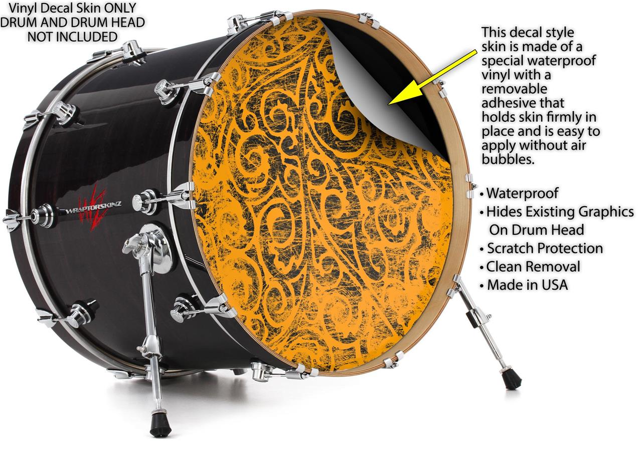 Vinyl Decal Skin Wrap for 22" Bass Kick Drum Head Folder Doodles Orange - DRUM HEAD NOT INCLUDED