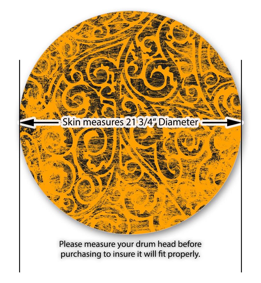 This design also available in other sizes. WraptorSkinz® skin wraps compatible with most kick drum heads. Printed using superb photo quality designs and vibrant colors printed with special fade resistant inks that last even in direct sun for years. WraptorSkinz are a composite three layer commercial grade materials vinyl. The bottom layer is a air release, grey block out removable adhesive that hides existing graphics on the drum head and is easily applied without air bubbles. The middle layer is a flexible vinyl printed with UV protected, fade resistant inks that deliver superb photo quality designs in vibrant colors. Finally, we bond a professional grade laminate over the entire skin adding a glossy protective finish.