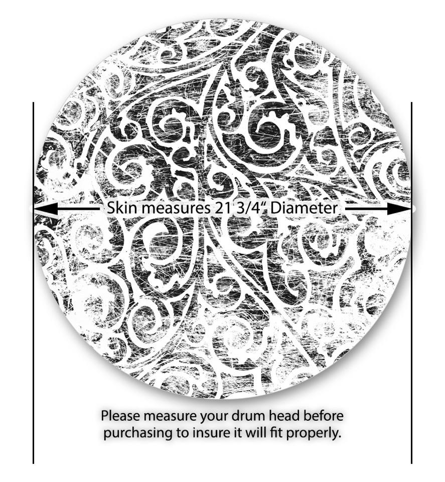 This design also available in other sizes. WraptorSkinz® skin wraps compatible with most kick drum heads. Printed using superb photo quality designs and vibrant colors printed with special fade resistant inks that last even in direct sun for years. WraptorSkinz are a composite three layer commercial grade materials vinyl. The bottom layer is a air release, grey block out removable adhesive that hides existing graphics on the drum head and is easily applied without air bubbles. The middle layer is a flexible vinyl printed with UV protected, fade resistant inks that deliver superb photo quality designs in vibrant colors. Finally, we bond a professional grade laminate over the entire skin adding a glossy protective finish.