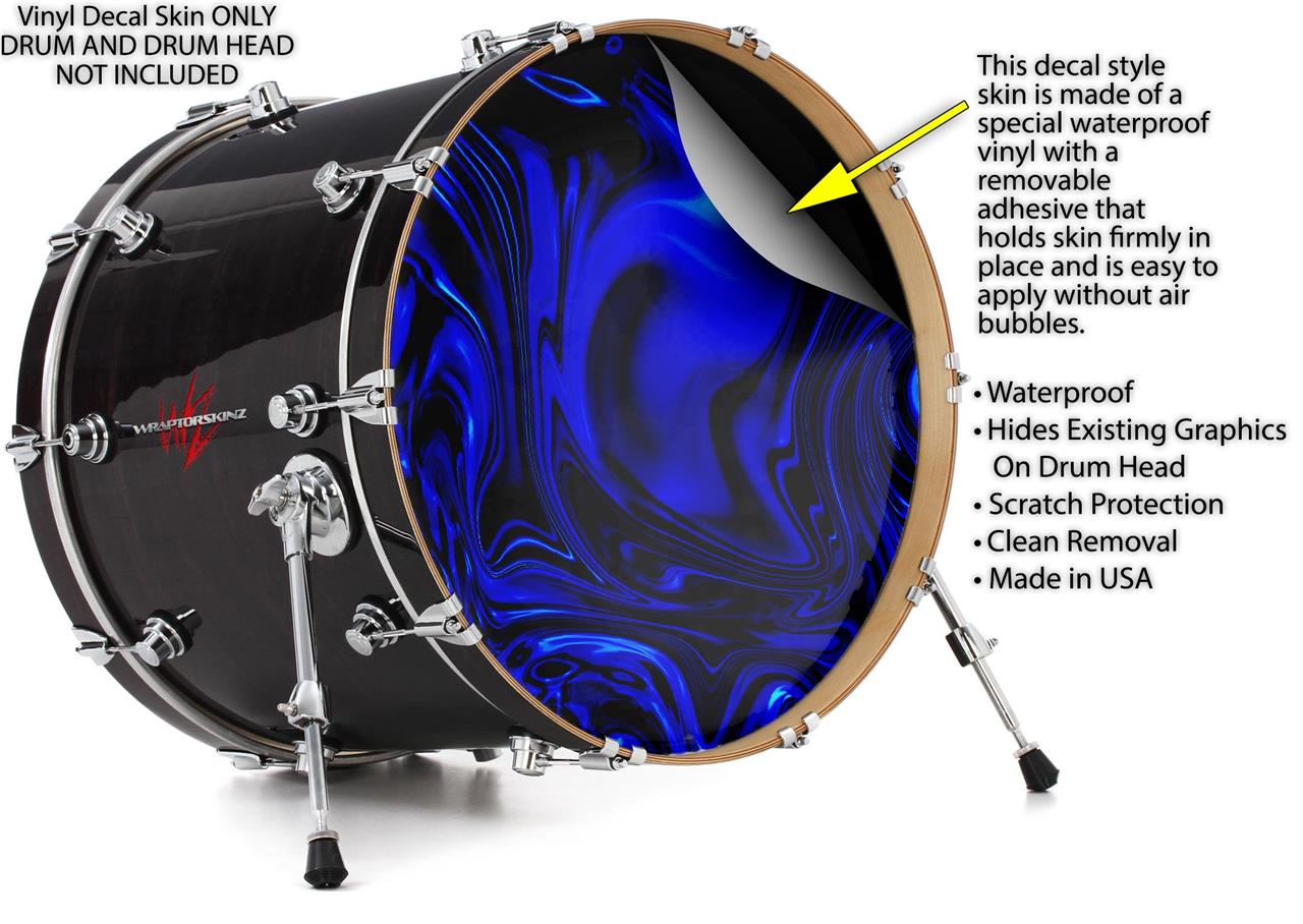 Vinyl Decal Skin Wrap for 22" Bass Kick Drum Head Liquid Metal Chrome Royal Blue - DRUM HEAD NOT INCLUDED