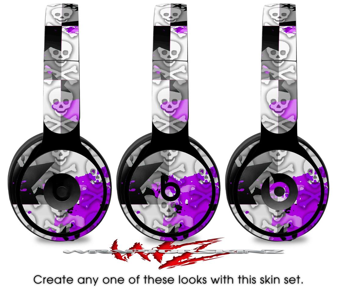 WraptorSkinz Skin Skin Decal Wrap works with Beats Solo Pro (Original) Headphones Purple Checker Skull Splatter Skin Only BEATS NOT INCLUDED