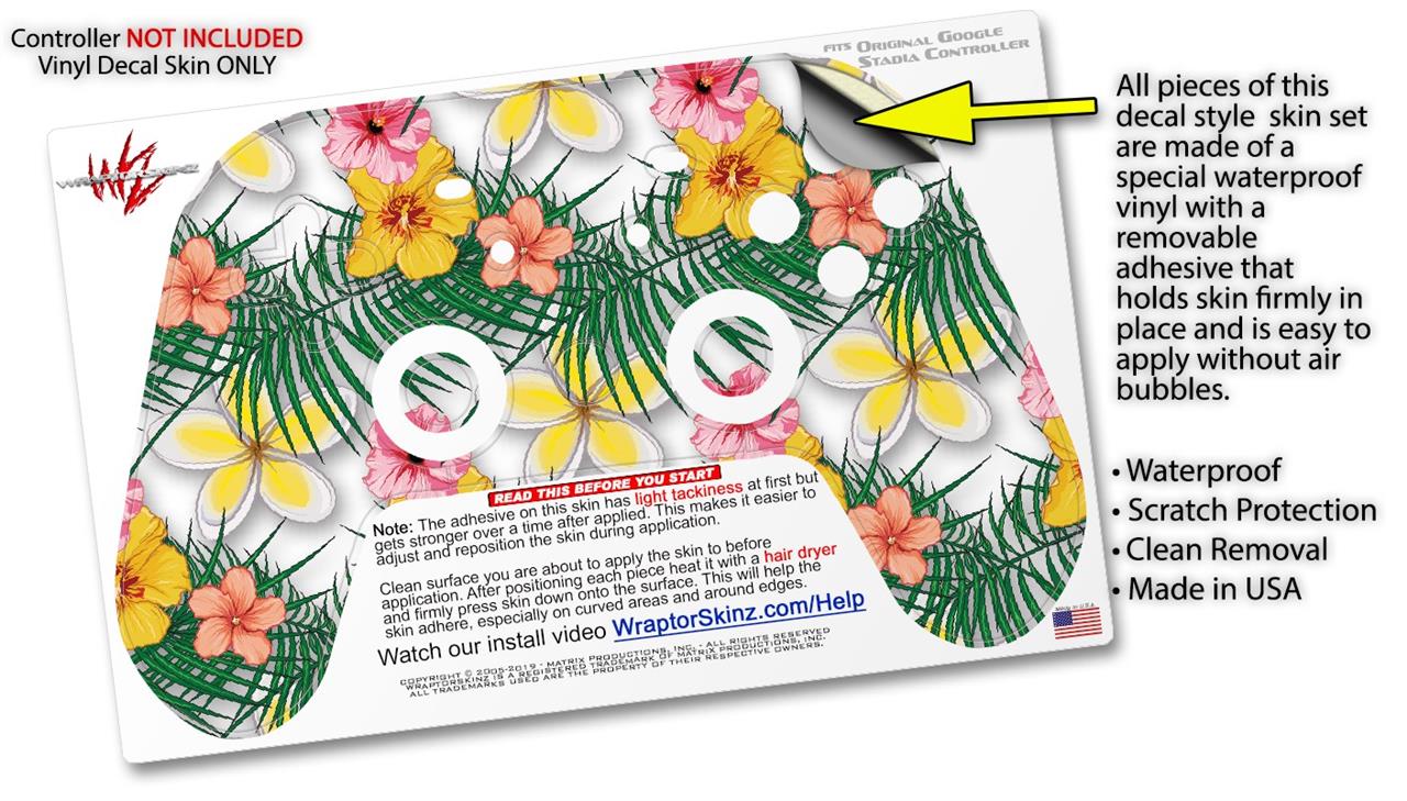 This product is in no way affiliated with or endorsed by Google. WraptorSkinz® skin wraps work with the Original Google Stadia version 1 Controller. Printed using superb photo quality designs and vibrant colors printed with special fade resistant inks that last even in direct sun for years. WraptorSkinz are a composite of two layers of commercial grade materials. The bottom layer is a soft, flexible vinyl with a special removable adhesive that is easily positioned, applied without air bubbles. Next, we print the bottom layer with UV protected, fade resistant inks that deliver superb photo quality designs in vibrant colors. Finally, we bond a professional grade laminate over the entire skin adding a glossy protective finish.