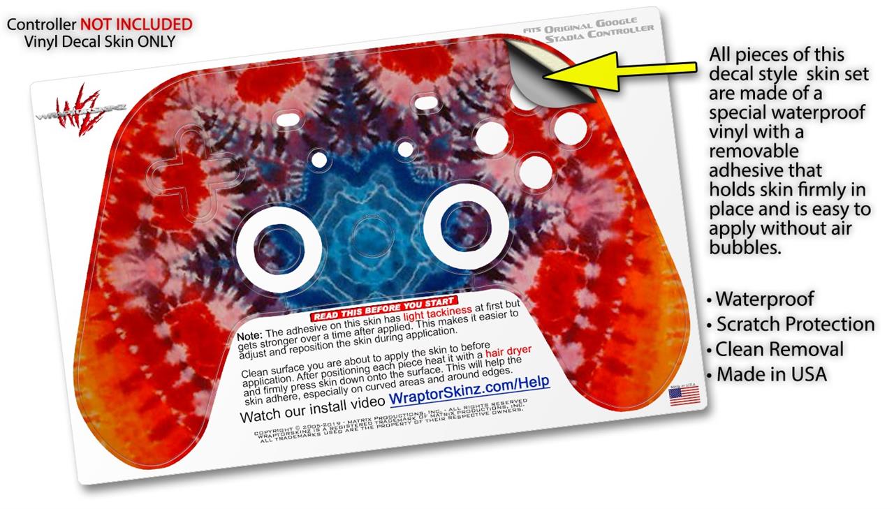 Skin Decal Wrap works with Original Google Stadia Controller Tie Dye Star 100 Skin Only CONTROLLER NOT INCLUDED