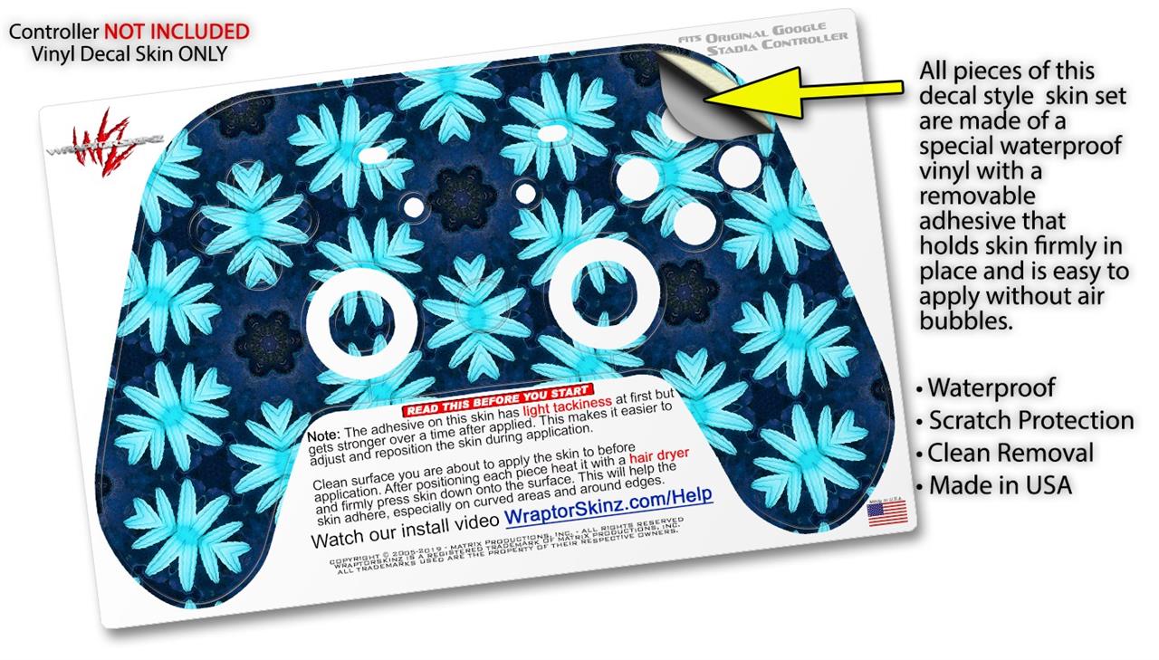 Skin Decal Wrap works with Original Google Stadia Controller Abstract Floral Blue Skin Only CONTROLLER NOT INCLUDED