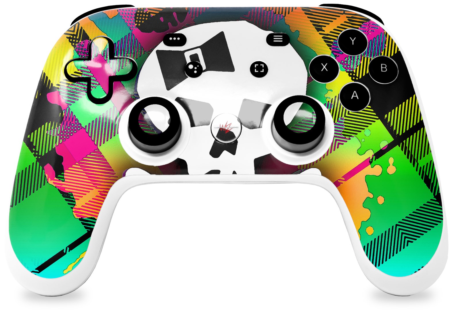 Skin Decal Wrap works with Original Google Stadia Controller Rainbow Plaid Skull Skin Only CONTROLLER NOT INCLUDED