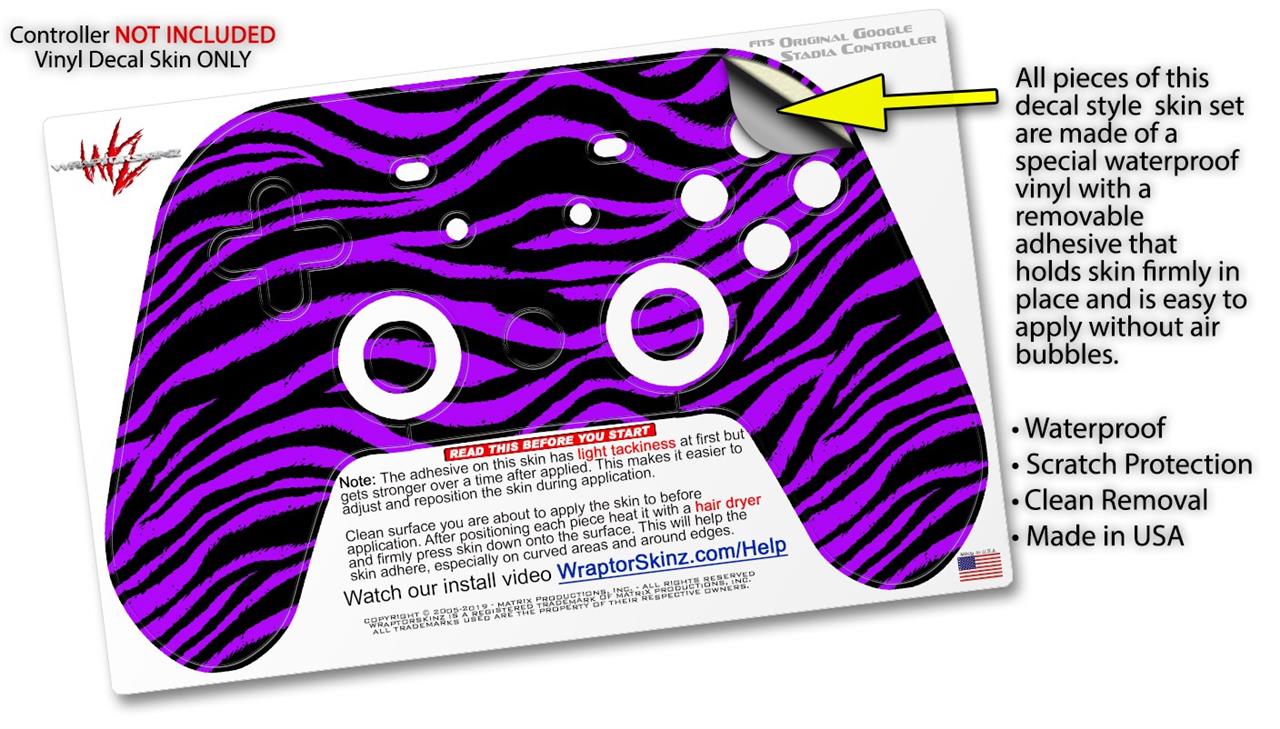 Skin Decal Wrap works with Original Google Stadia Controller Purple Zebra Skin Only CONTROLLER NOT INCLUDED