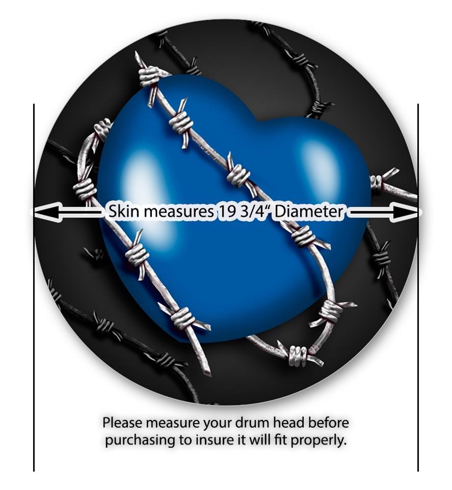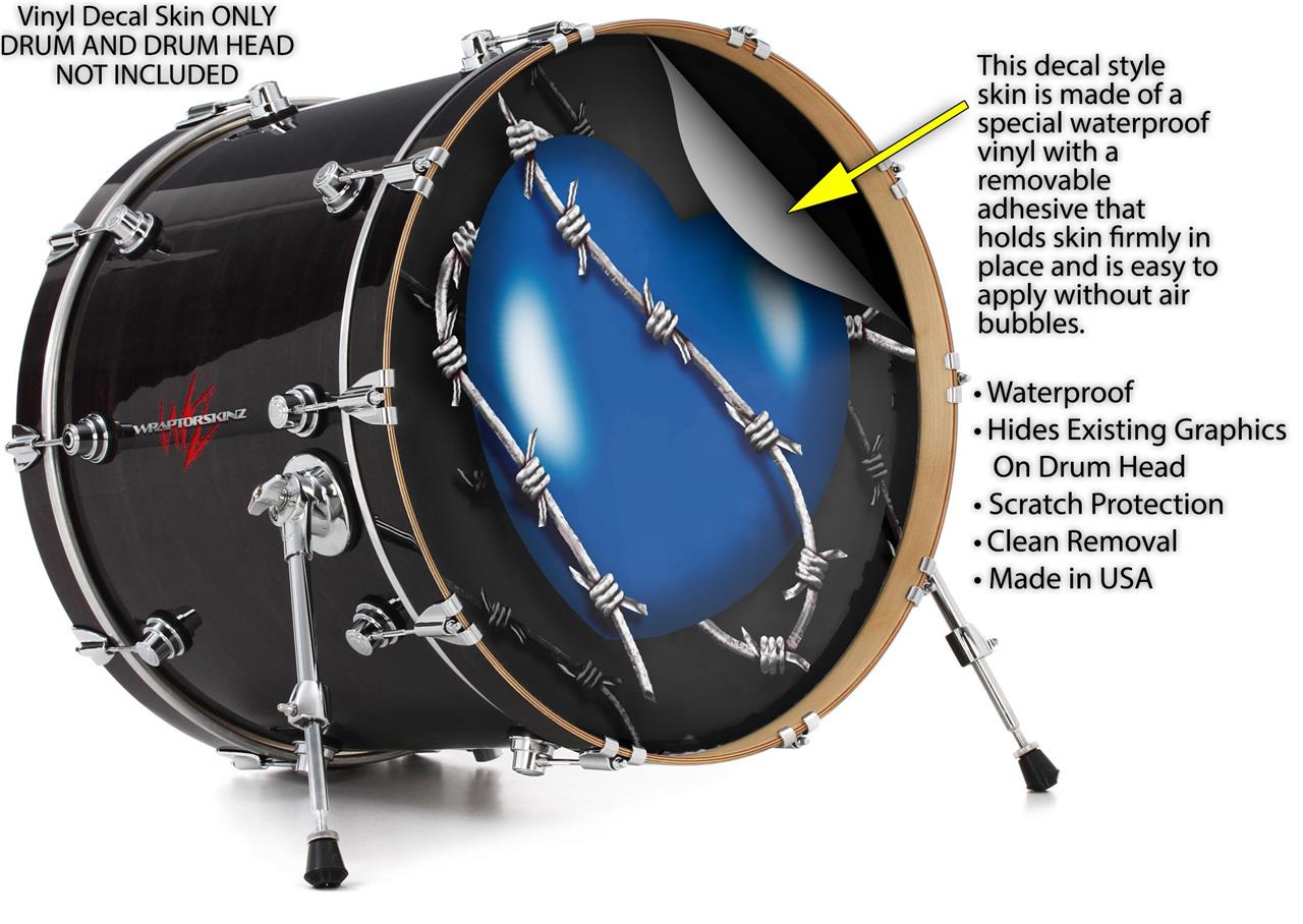 Vinyl Decal Skin Wrap for 20" Bass Kick Drum Head Barbwire Heart Blue - DRUM HEAD NOT INCLUDED