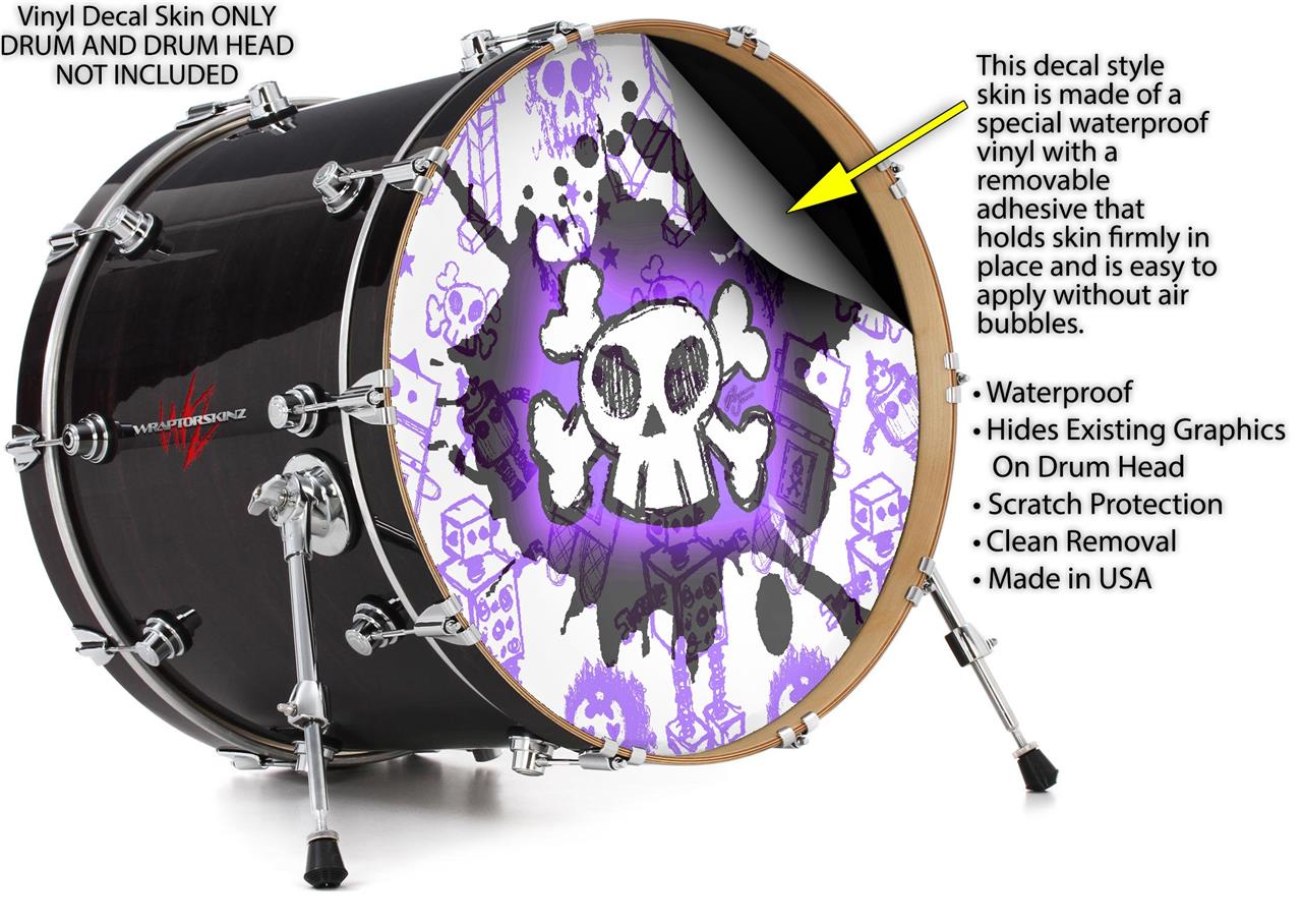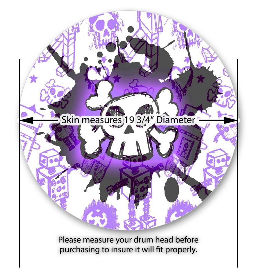 Vinyl Decal Skin Wrap for 20" Bass Kick Drum Head Cartoon Skull Purple - DRUM HEAD NOT INCLUDED
