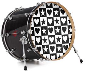 Vinyl Decal Skin Wrap for 20" Bass Kick Drum Head Hearts And Stars Black and White - DRUM HEAD NOT INCLUDED