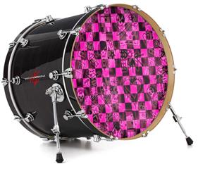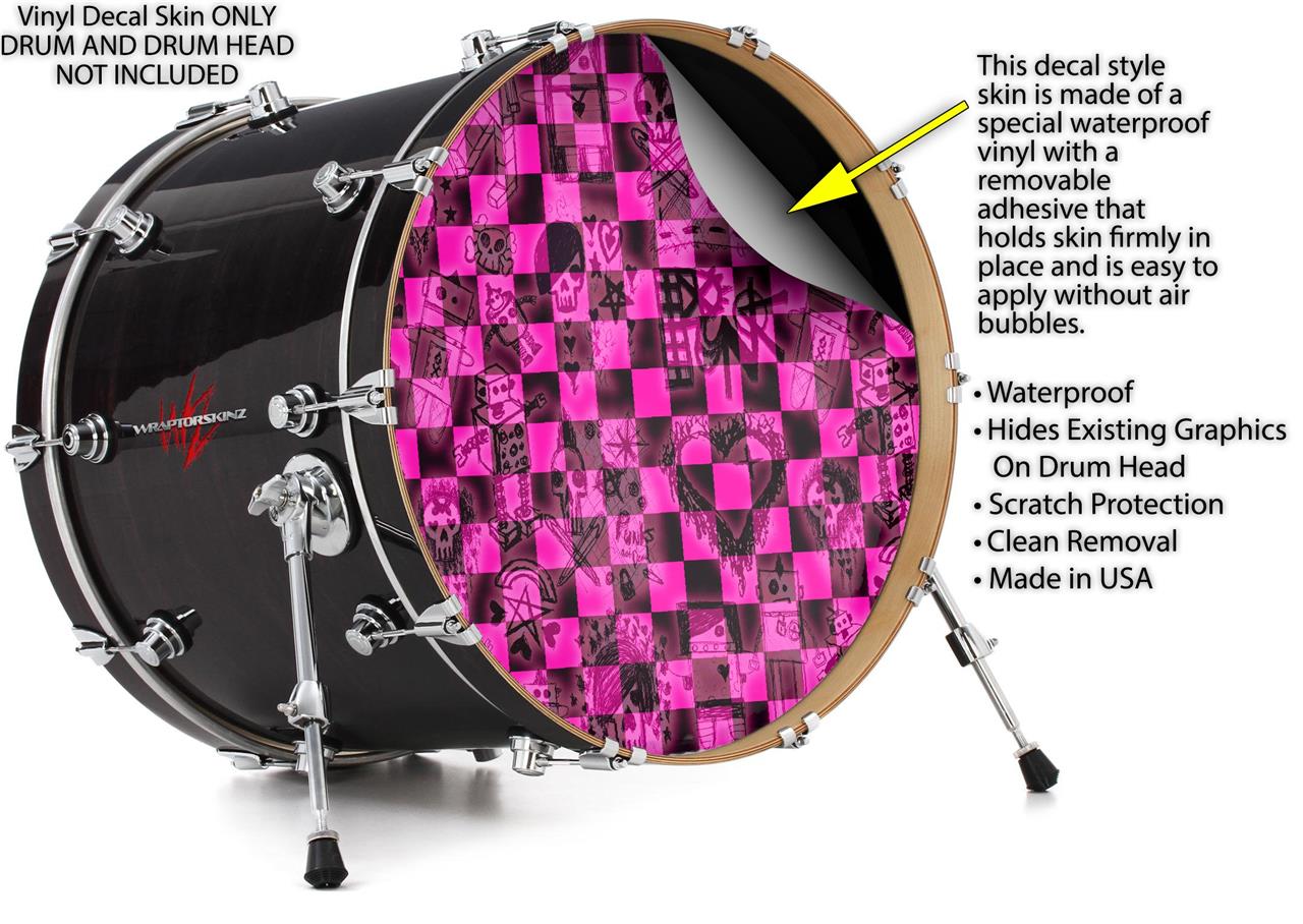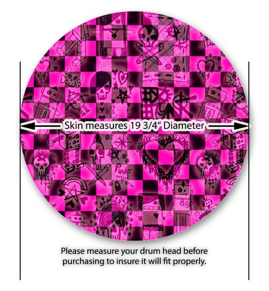 Vinyl Decal Skin Wrap for 20" Bass Kick Drum Head Pink Checkerboard Sketches - DRUM HEAD NOT INCLUDED
