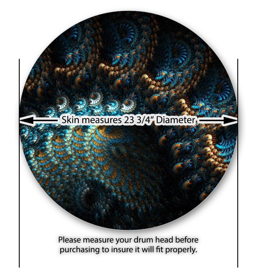 This design also available in other sizes. WraptorSkinz® skin wraps compatible with most kick drum heads. Printed using superb photo quality designs and vibrant colors printed with special fade resistant inks that last even in direct sun for years. WraptorSkinz are a composite three layer commercial grade materials vinyl. The bottom layer is a air release, grey block out removable adhesive that hides existing graphics on the drum head and is easily applied without air bubbles. The middle layer is a flexible vinyl printed with UV protected, fade resistant inks that deliver superb photo quality designs in vibrant colors. Finally, we bond a professional grade laminate over the entire skin adding a glossy protective finish.