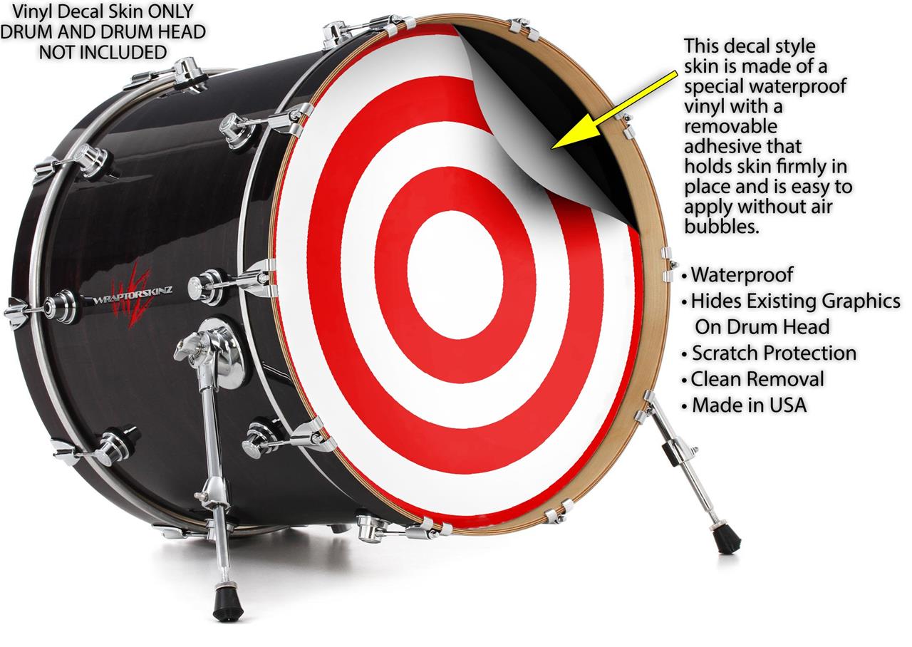 Decal Skin works with most 24" Bass Kick Drum Heads Bullseye Red and White - DRUM HEAD NOT INCLUDED
