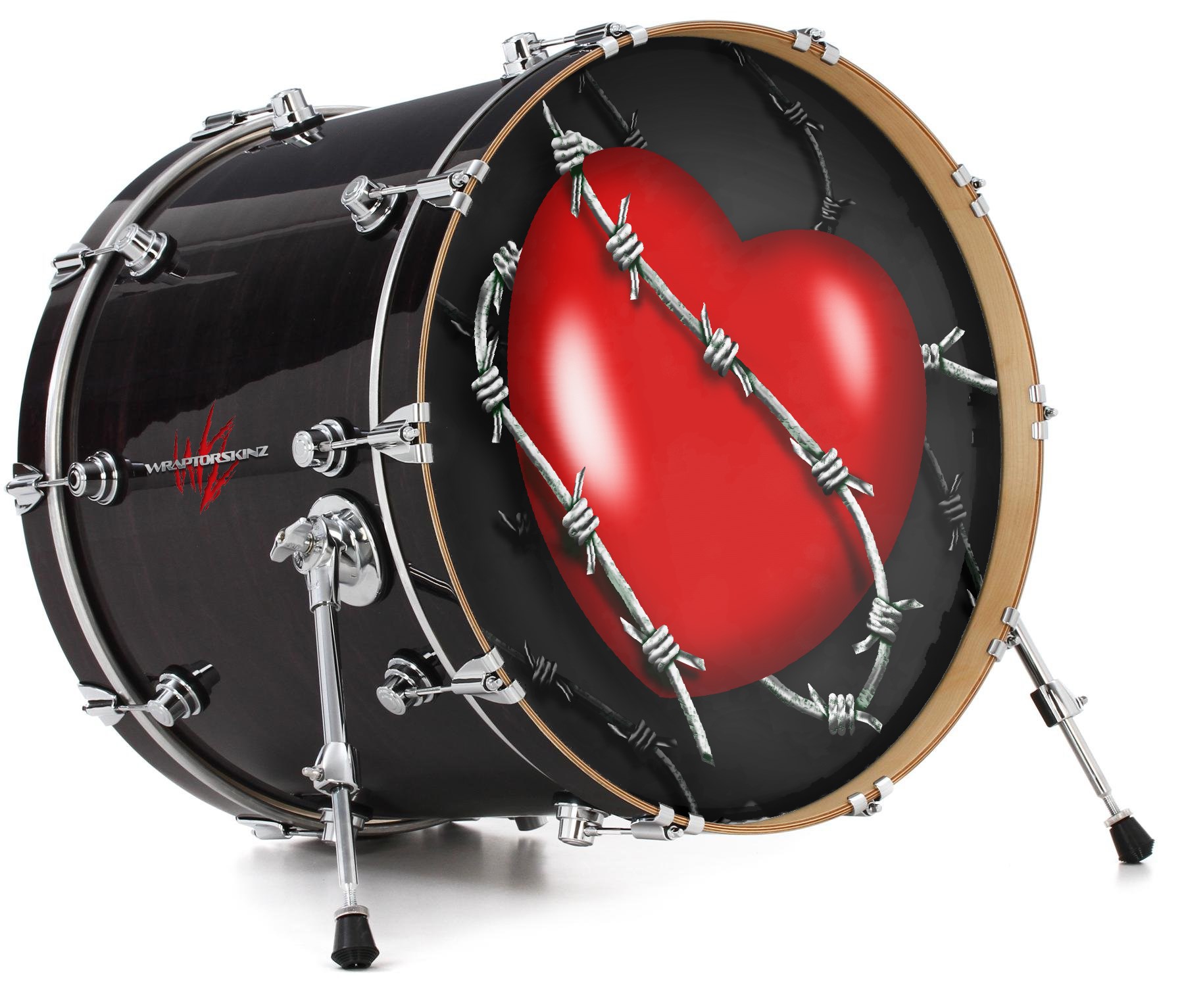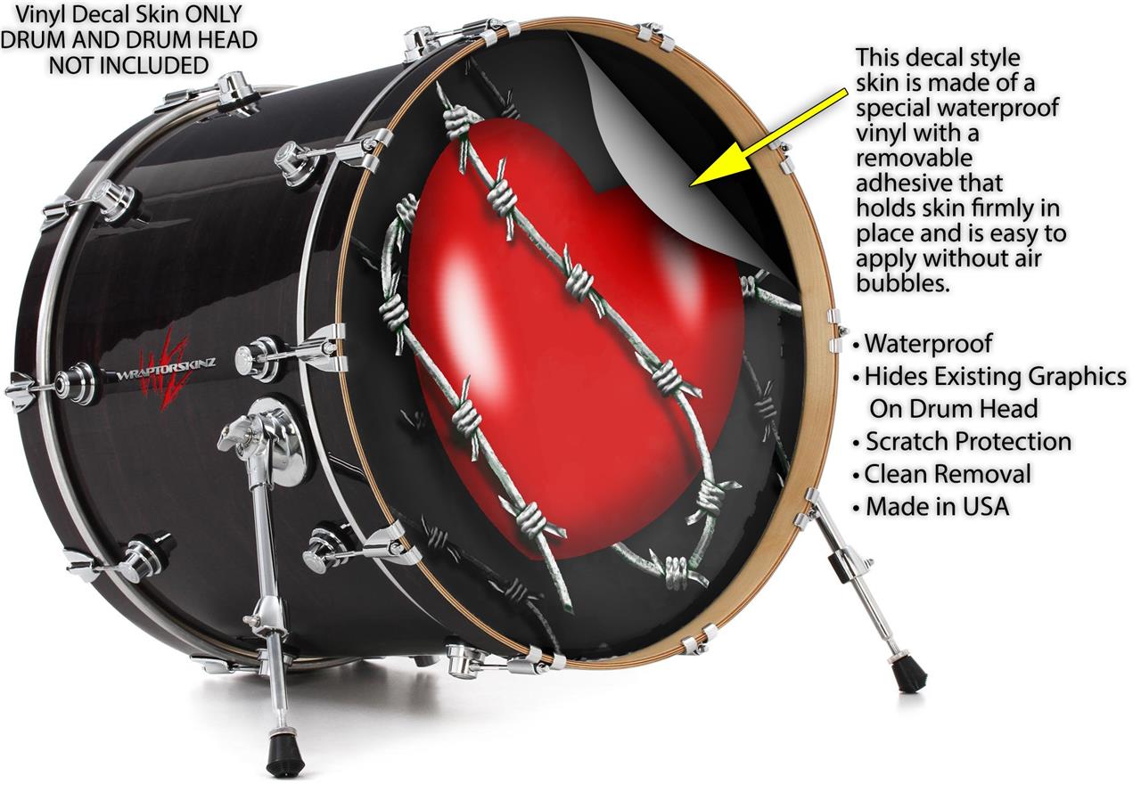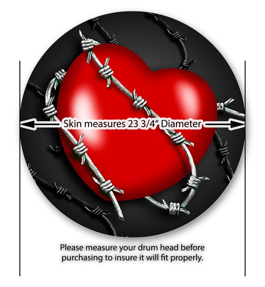 Decal Skin works with most 24" Bass Kick Drum Heads Barbwire Heart Red - DRUM HEAD NOT INCLUDED
