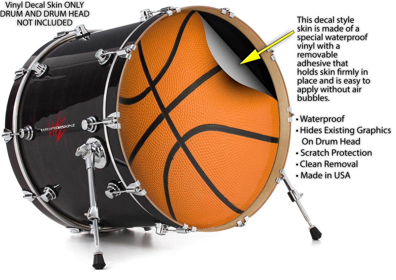 Decal Skin works with most 24" Bass Kick Drum Heads Basketball - DRUM HEAD NOT INCLUDED