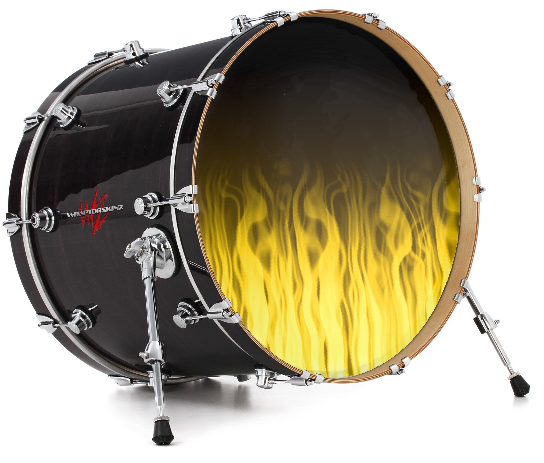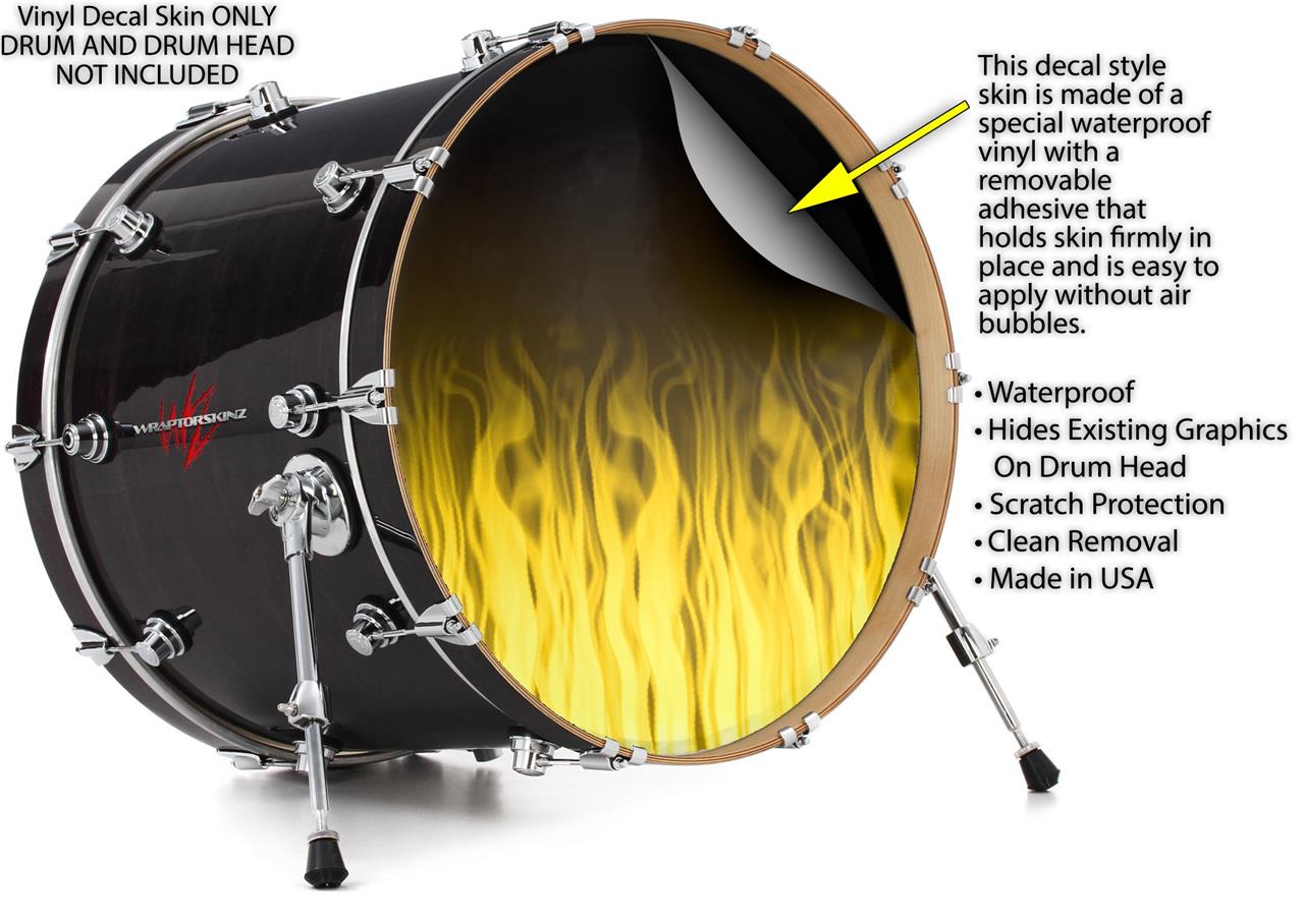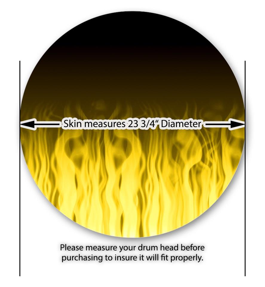 Decal Skin works with most 24" Bass Kick Drum Heads Fire Flames Yellow - DRUM HEAD NOT INCLUDED