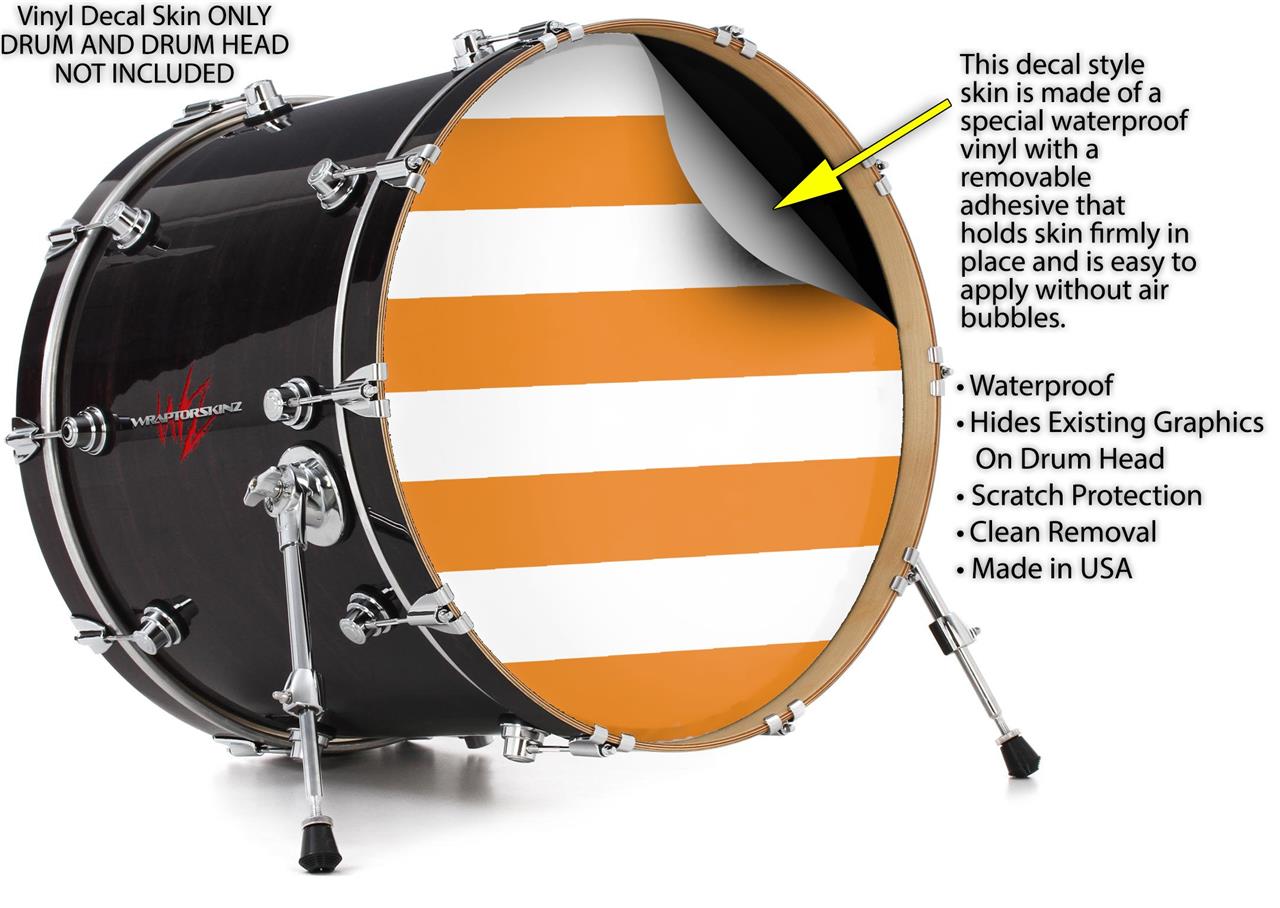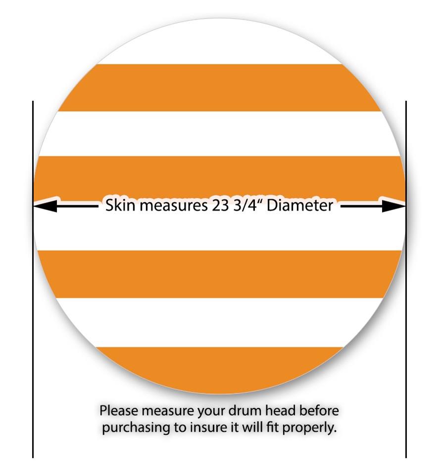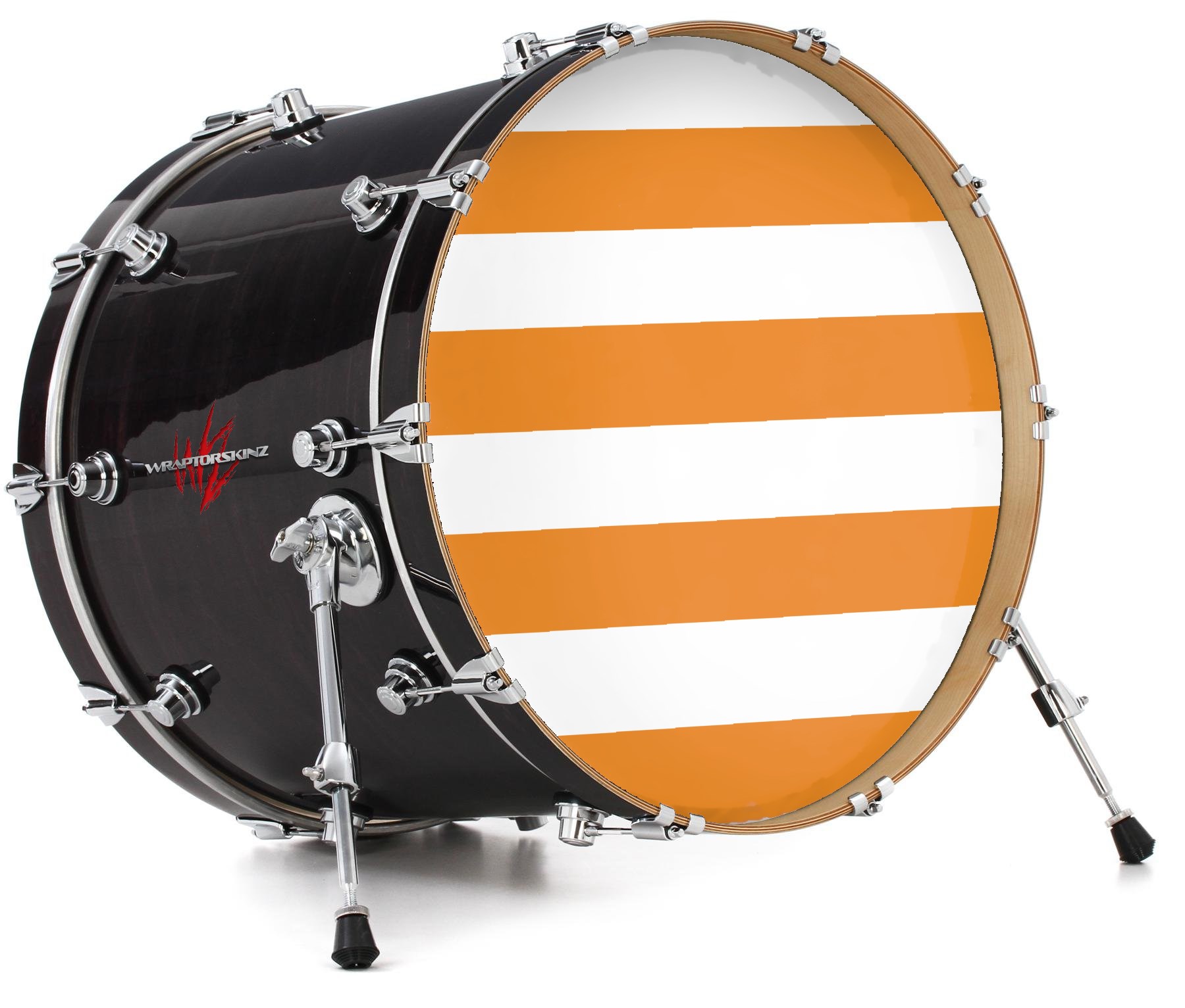 Decal Skin works with most 24" Bass Kick Drum Heads Psycho Stripes Orange and White - DRUM HEAD NOT INCLUDED
