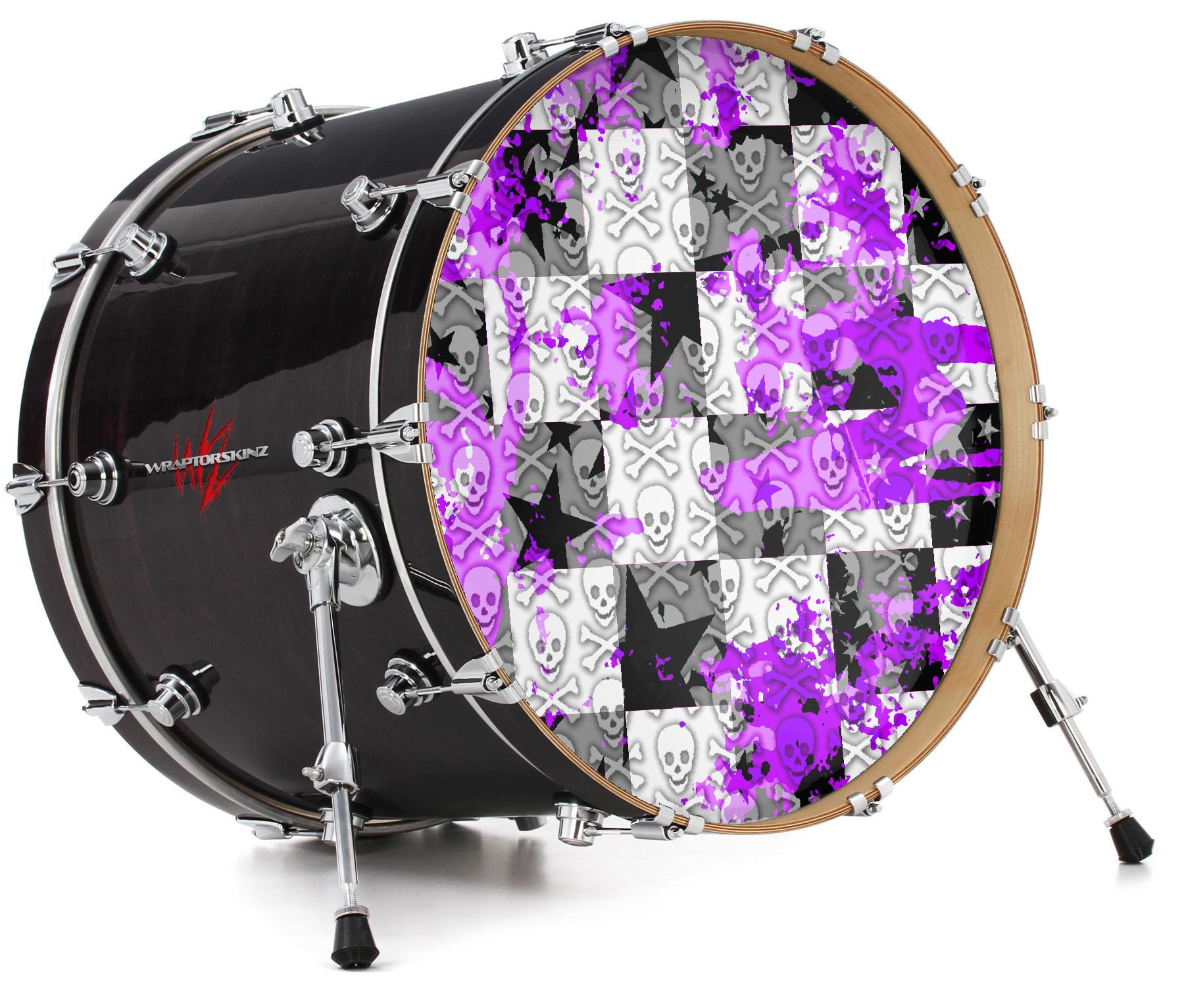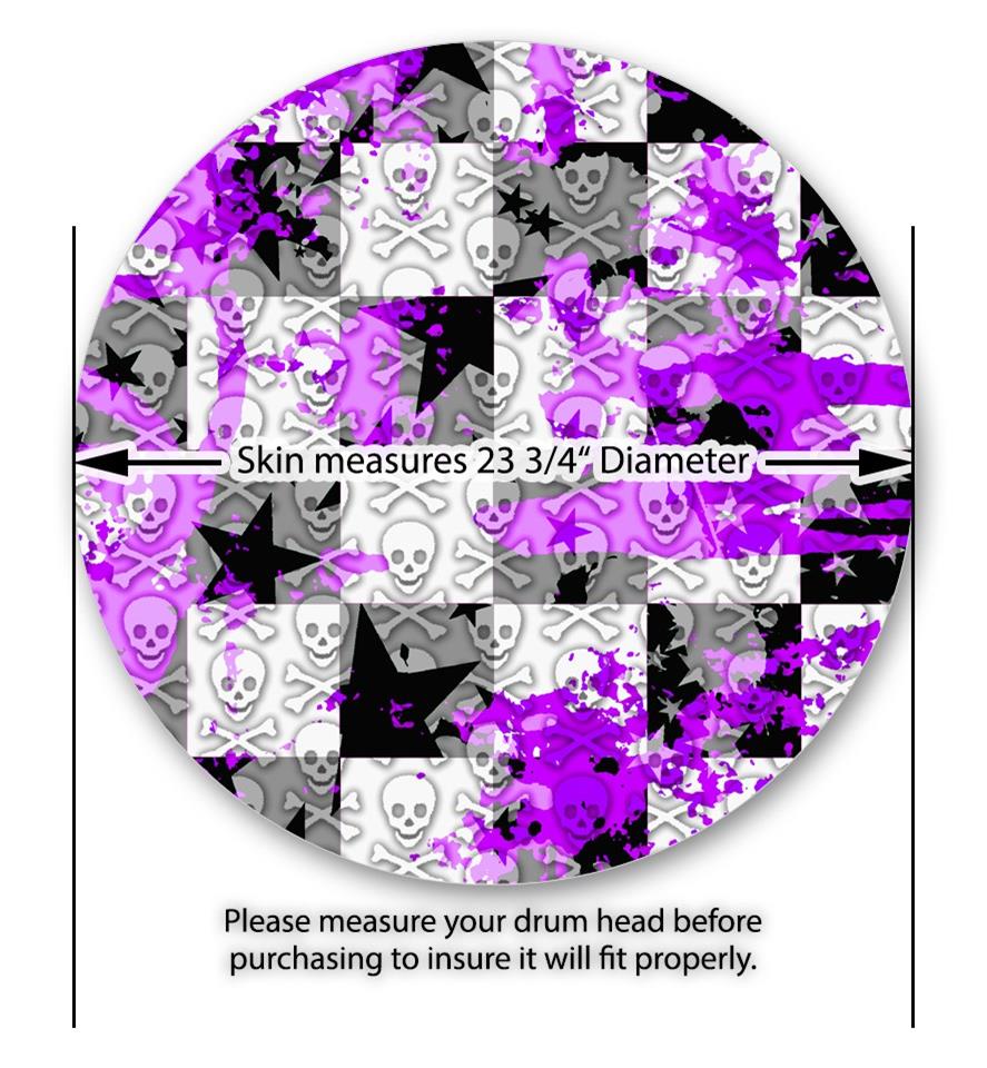 Decal Skin works with most 24" Bass Kick Drum Heads Purple Checker Skull Splatter - DRUM HEAD NOT INCLUDED