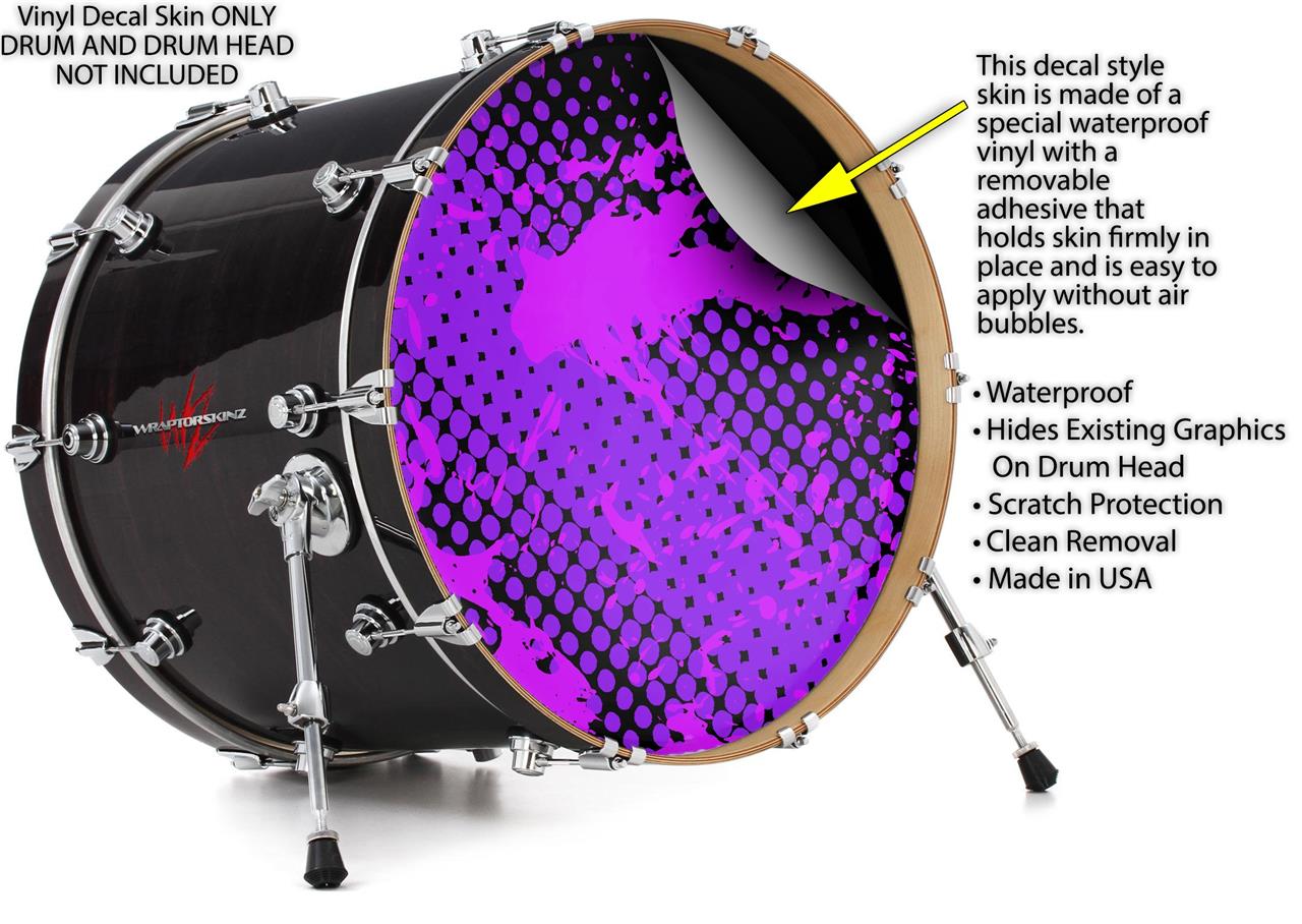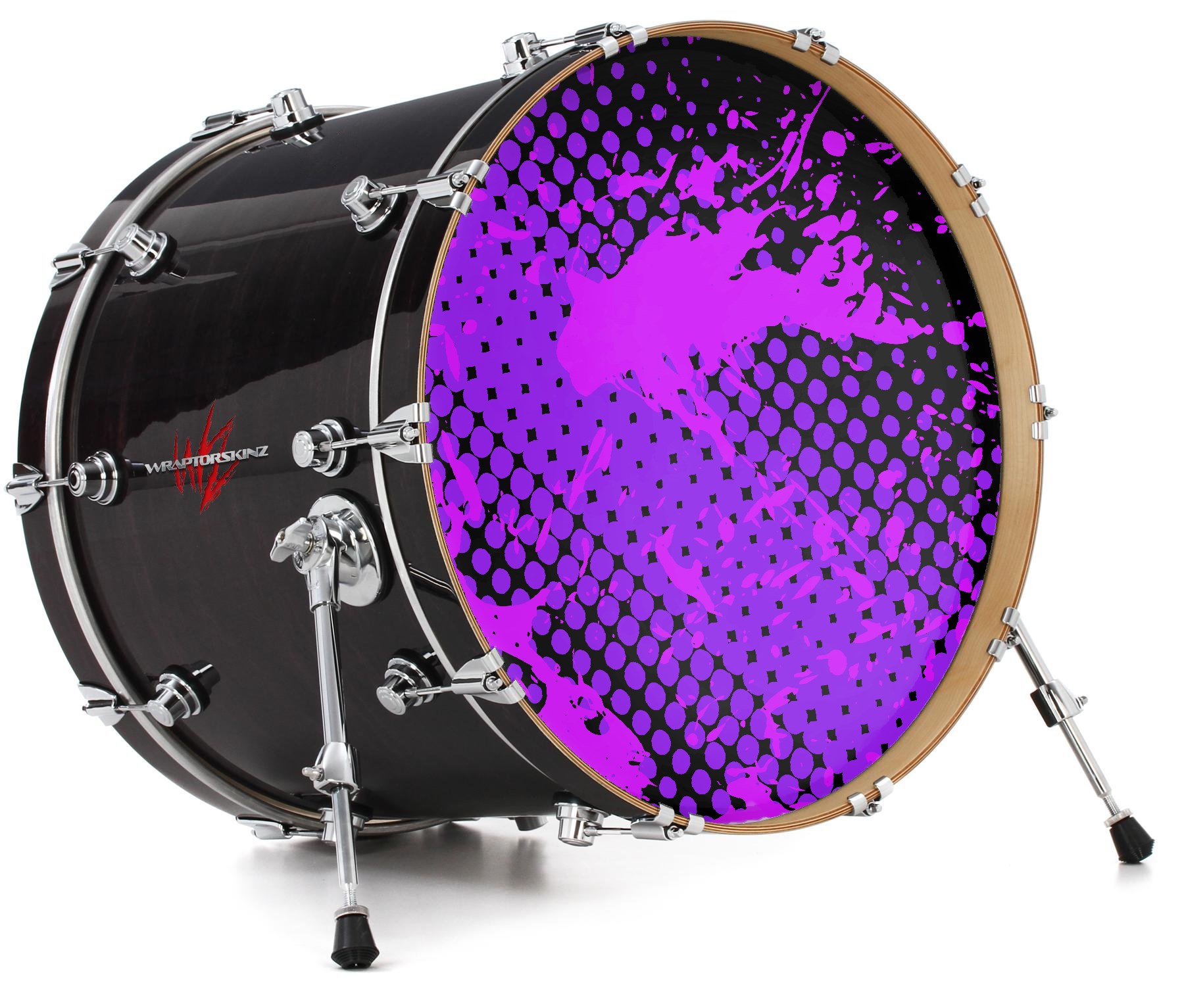 Decal Skin works with most 26" Bass Kick Drum Heads Halftone Splatter Hot Pink Purple - DRUM HEAD NOT INCLUDED
