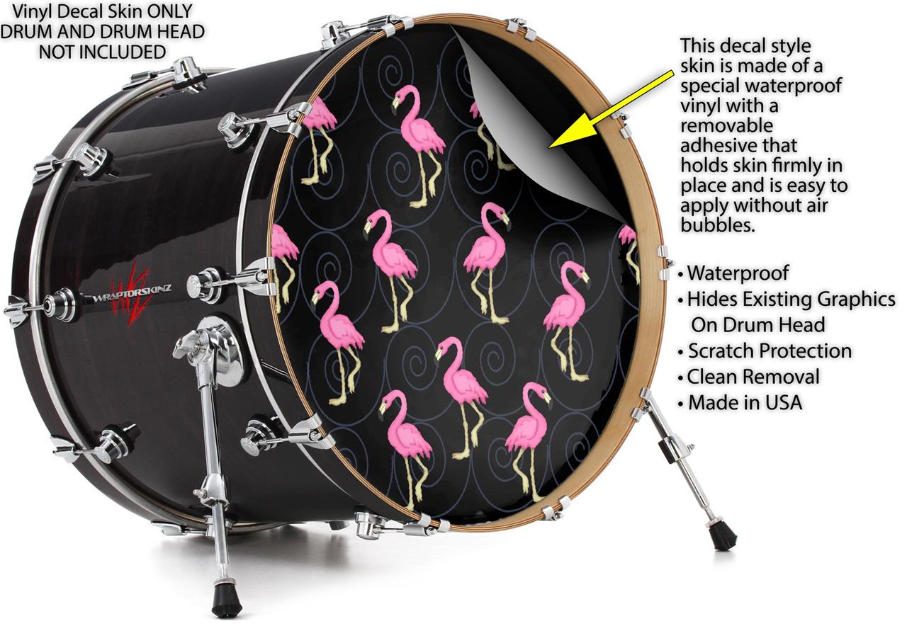 Decal Skin works with most 26" Bass Kick Drum Heads Flamingos on Black - DRUM HEAD NOT INCLUDED