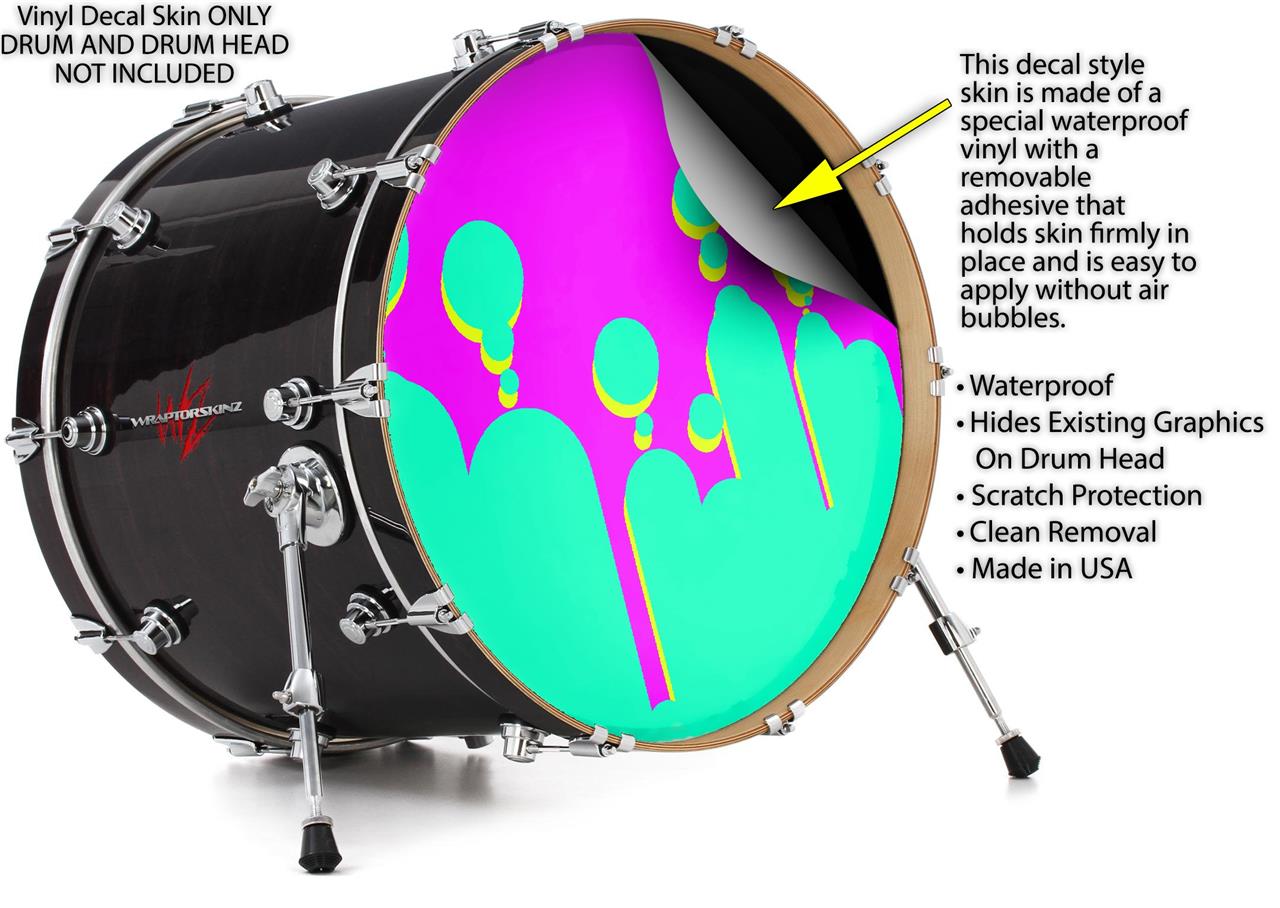 Decal Skin works with most 26" Bass Kick Drum Heads Drip Teal Pink Yellow - DRUM HEAD NOT INCLUDED