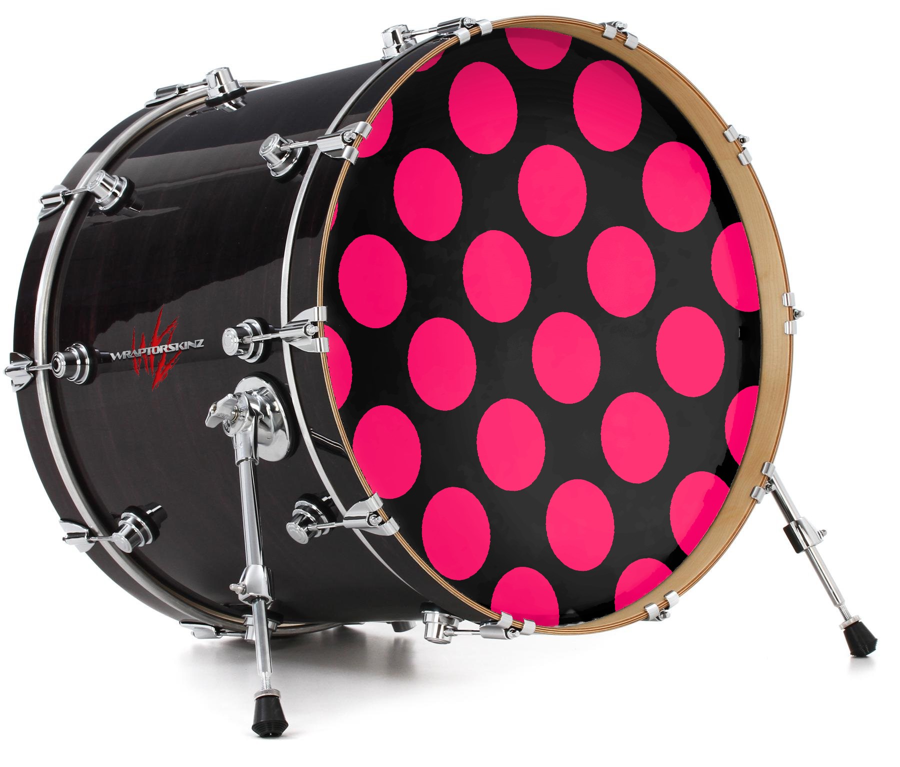 Decal Skin works with most 26" Bass Kick Drum Heads Kearas Polka Dots Pink On Black - DRUM HEAD NOT INCLUDED