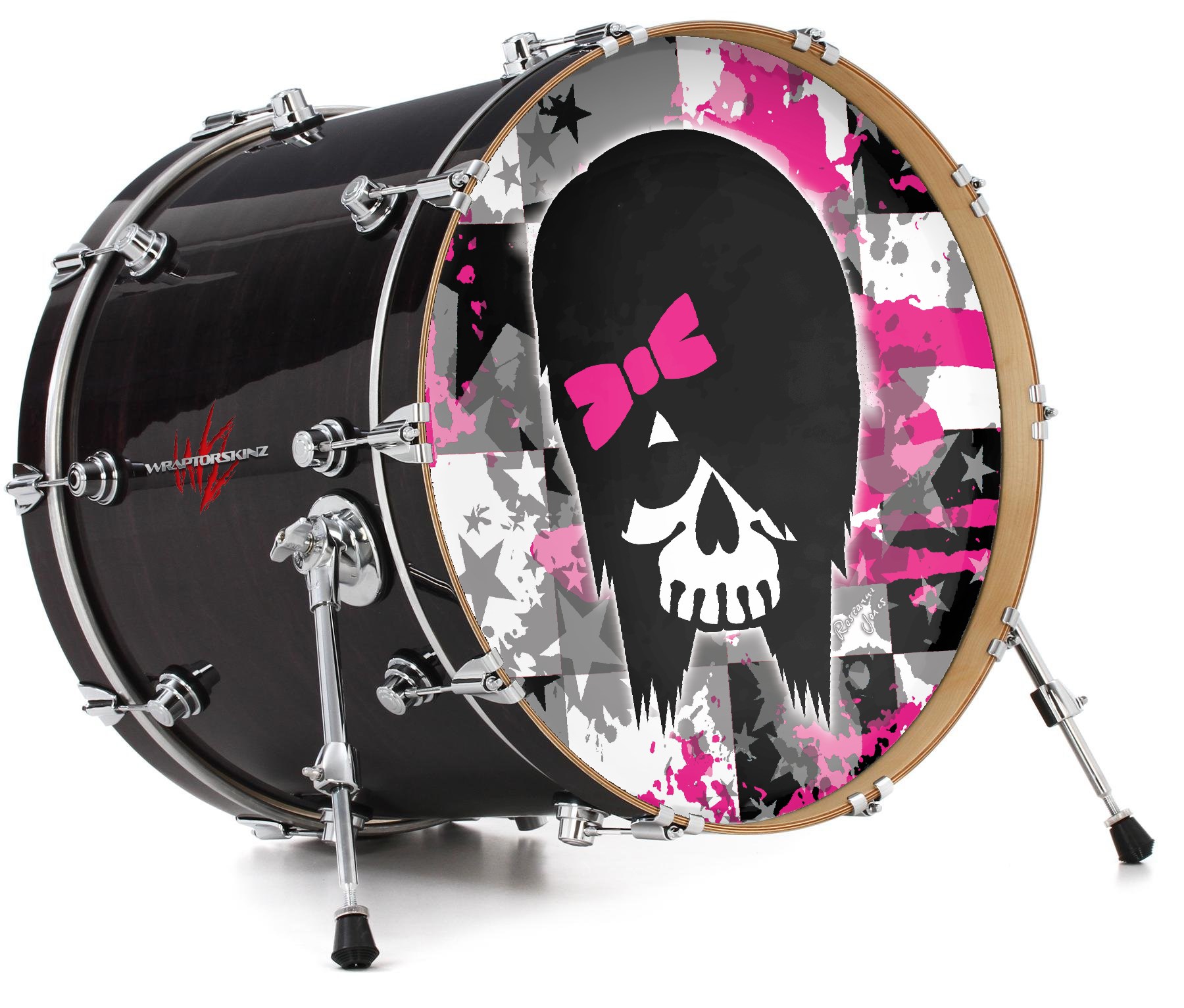 Decal Skin works with most 26" Bass Kick Drum Heads Scene Kid Girl Skull - DRUM HEAD NOT INCLUDED
