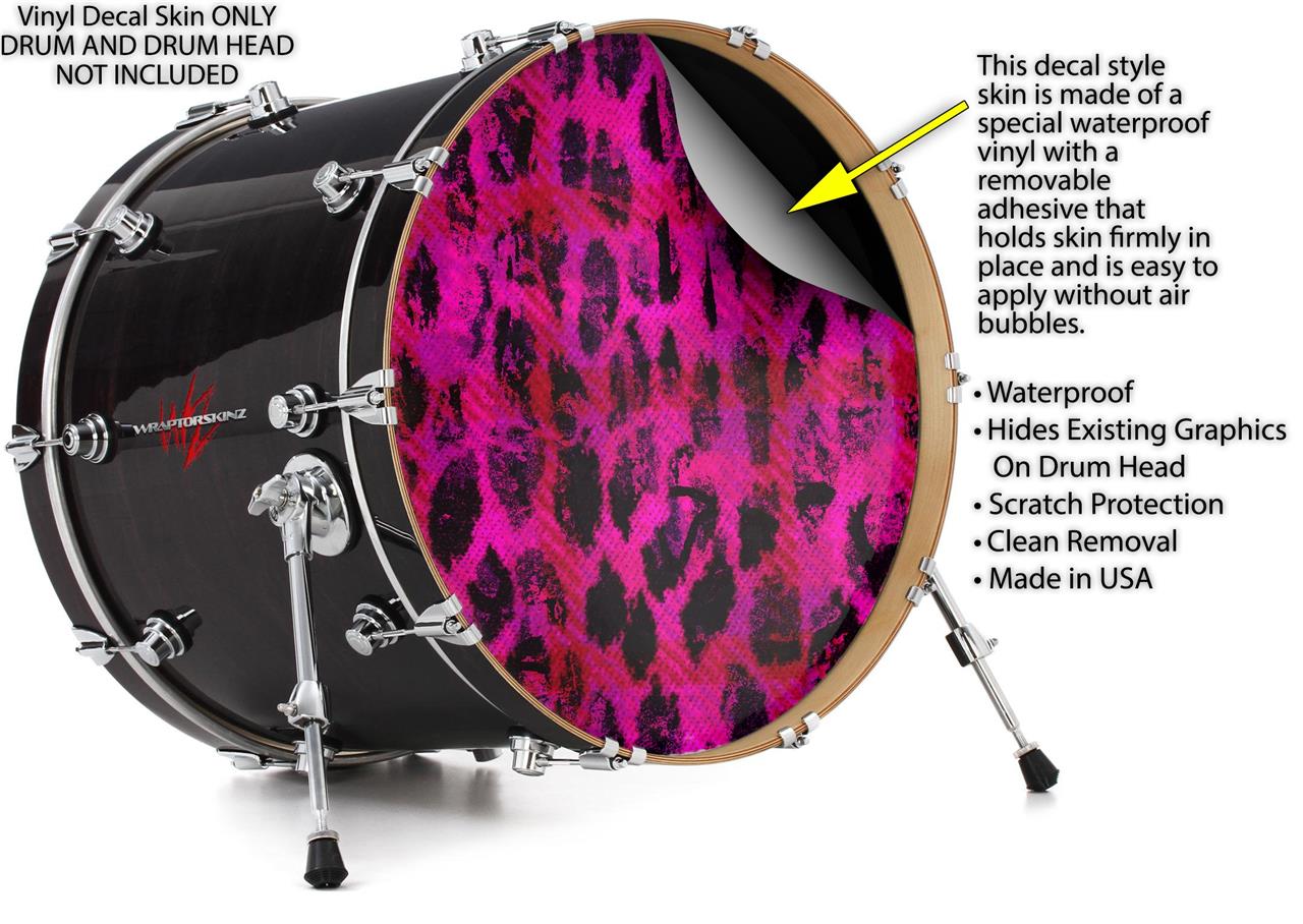 Decal Skin works with most 26" Bass Kick Drum Heads Pink Distressed Leopard - DRUM HEAD NOT INCLUDED
