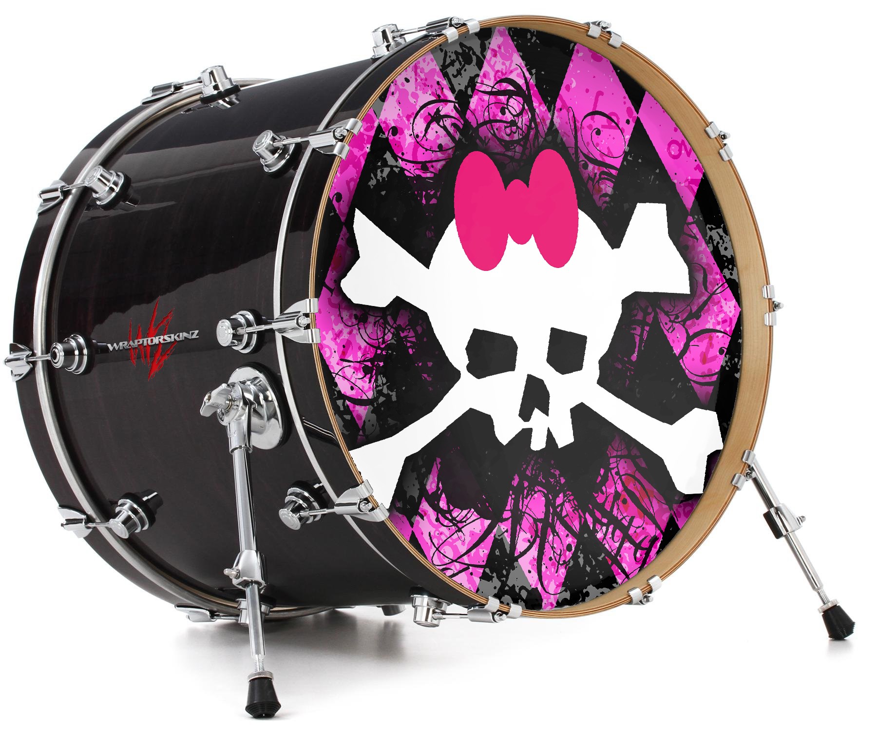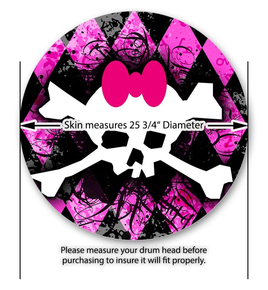 Decal Skin works with most 26" Bass Kick Drum Heads Pink Diamond Skull - DRUM HEAD NOT INCLUDED