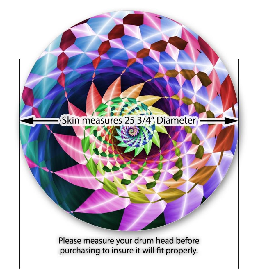 This design also available in other sizes. WraptorSkinz® skin wraps compatible with most kick drum heads. Printed using superb photo quality designs and vibrant colors printed with special fade resistant inks that last even in direct sun for years. WraptorSkinz are a composite three layer commercial grade materials vinyl. The bottom layer is a air release, grey block out removable adhesive that hides existing graphics on the drum head and is easily applied without air bubbles. The middle layer is a flexible vinyl printed with UV protected, fade resistant inks that deliver superb photo quality designs in vibrant colors. Finally, we bond a professional grade laminate over the entire skin adding a glossy protective finish.