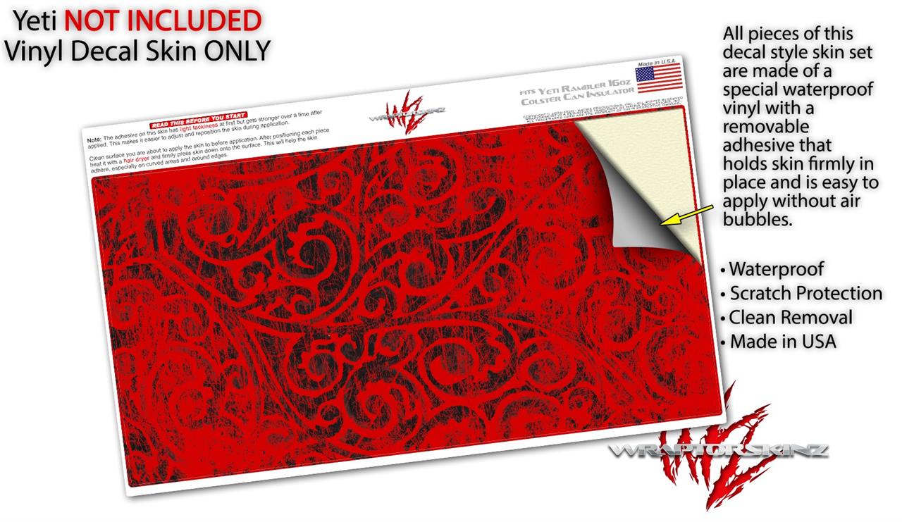 WraptorSkinz Skin Decal Wrap compatible with Yeti 16oz Tall Colster Can Cooler Insulator Folder Doodles Red (COOLER NOT INCLUDED)