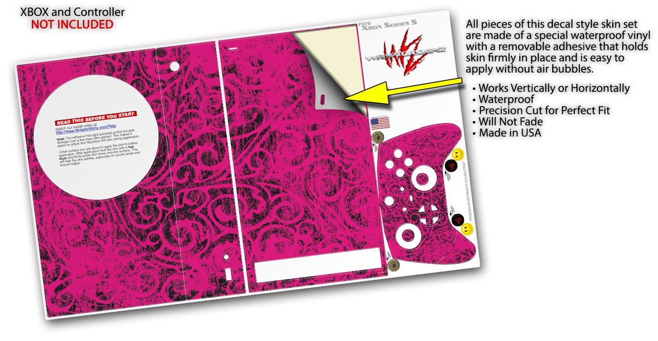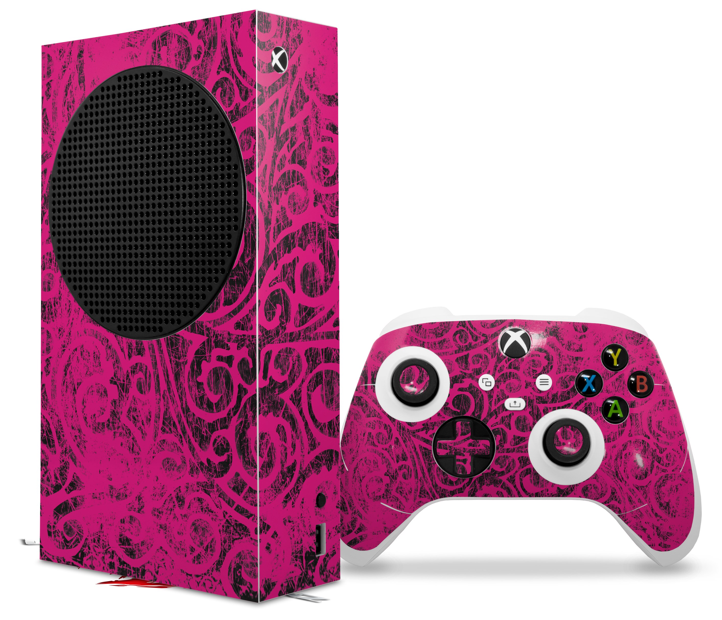 WraptorSkinz Skin Wrap compatible with the 2020 XBOX Series S Console and Controller Folder Doodles Fuchsia (XBOX NOT INCLUDED)